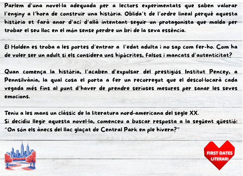 .Us animem a participar-hi de nou. Recordem que us presentem dos nous enigmes que amaguen dos llibres. Llegiu-vos les pistes i, si sabeu de quin llibre estem parlant, passeu pel vestíbul de l’entrada principal de l’institut i deixeu la vostra resposta dins la capsa. No us oblideu de posar-hi el vostre nom i el curs.