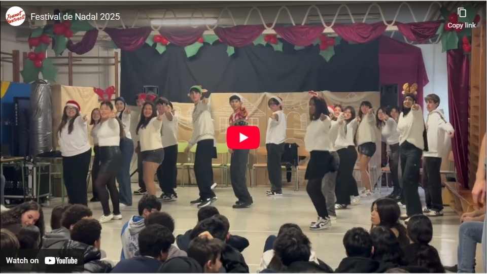 El passat 19 de desembre l’institut va celebrar el festival de Nadal amb un format renovat. Com a novetat, es va dur a terme al gimnàs del centre i es va organitzar per torns segons els nivells, fet que va permetre viure’l d’una manera més breu i propera. L’alumnat va gaudir de diverses actuacions, amb