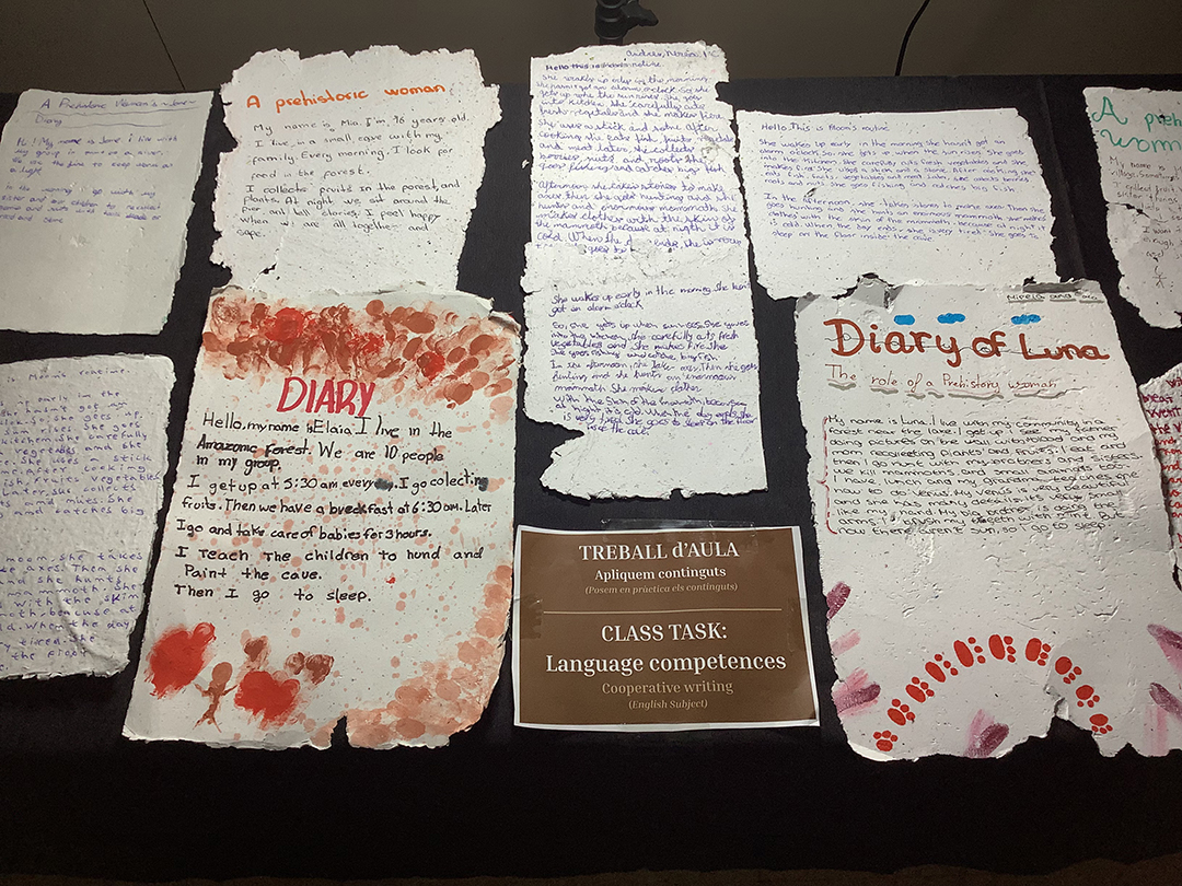 Com a activitats finals del projecte, l’alumnat ha organitzat aquesta exposició museística reconvertint una aula de l’institut. Igualment, i per grups, fan de guies a alumnat d’altres nivells del propi institut amb l’objectiu de presentar tot el que han après durant el projecte.