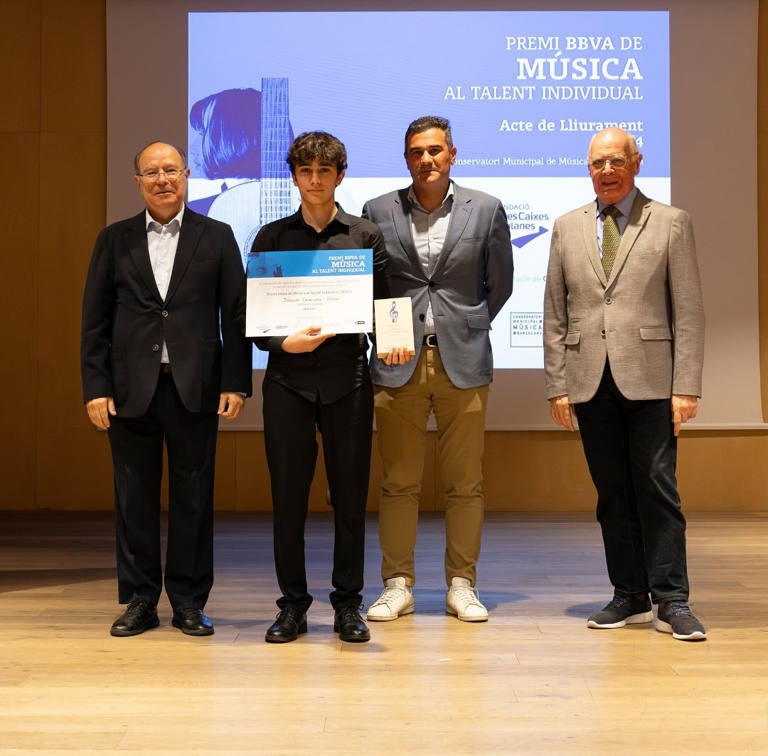 Felicitem el nostre alumne de 4t d’ESO, Quim Carandell, per haver guanyat el premi BBVA de Música al Talent Individual en la Categoria Júnior (fins als 16 anys) en la seva 8a edició. A més, el tribunal li ha concedit el Premi ACCat a la millor interpretació d’una obra de compositor català de la categoria Júnior, per la interpretació de la Dansa Ibèrica núm. 2 de Joan Manén.