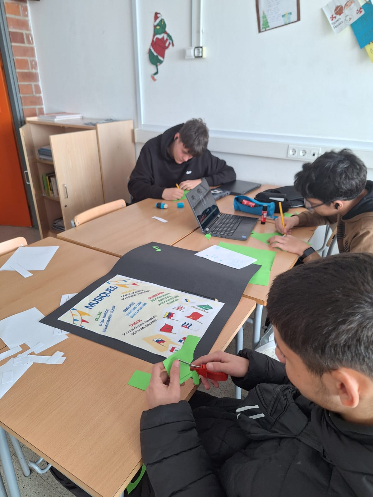 L’alumnat de l’Aula d’Acollida ha treballat el Dia Internacional de la Llengua Materna, celebrat cada 21 de febrer, i n’ha fet un mural commemoratiu amb les banderes del seus països d’origen.