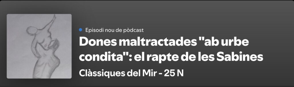 El 25 de Novembre, el Dia Internacional per a l’Eliminació de la Violència contra les Dones, mostrem també que la violència contra les dones està present als inicis de la civilització romana i que es justificava igual que encara al present.