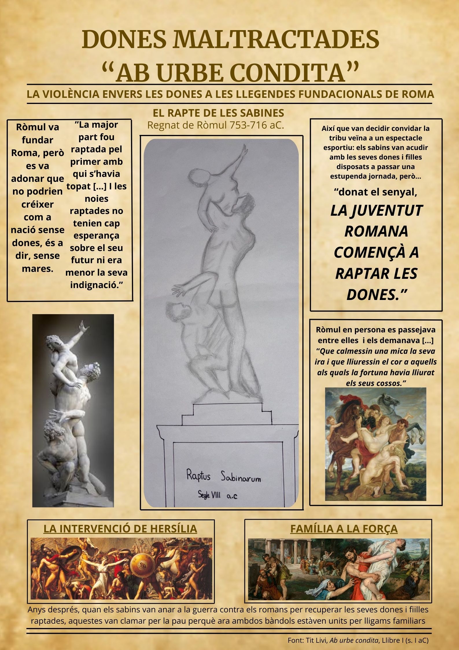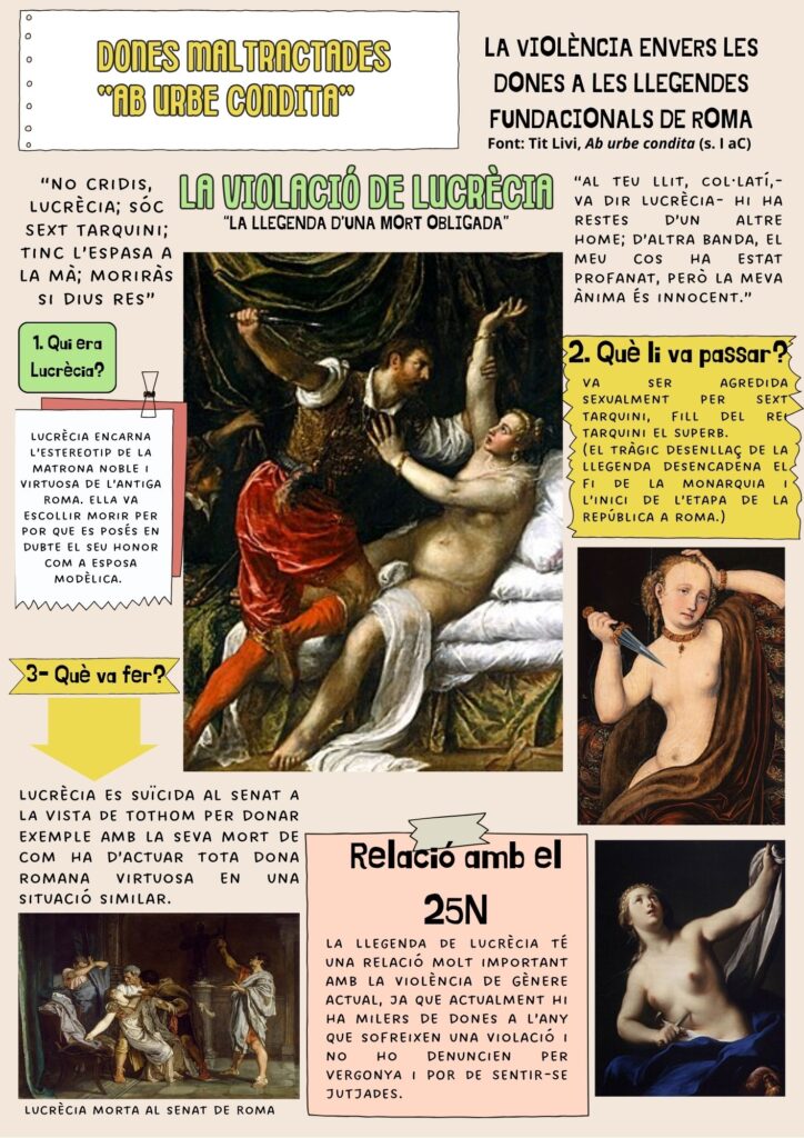 Amb motiu del 25 N, l’alumnat de LLATÍ també ha desenvolupat aquest altre pòster sobre la llegenda de la violació de Lucrècia que posa fi a l’etapa de la monarquia romana: