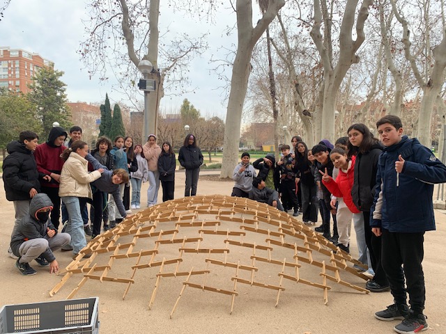 Els alumnes de Matemàtiques Aplicades de 1r de Batxillerat han fet una petita sortida de treball de camp per tal de mesurar l’alçada d’alguns edificis de la Plaça Eivissa per procediments trigonomètrics. Per fer-ho, l’alumnat ha utilitzat diversos estris i ha fet càlculs de diferent complexitat per resoldre els diferents enigmes.