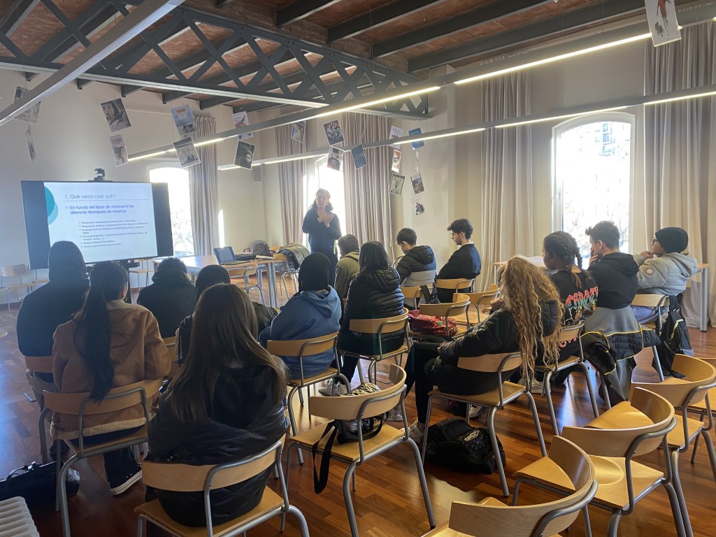 Els alumnes de 1r BAT es preparen per realitzar una exposició oral.
