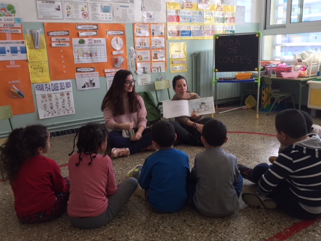 Dimecres 28 d’abril alumnes de 3r i 4t d’aula oberta van organitzar un taller de contes per als alumnes de P5 de les escoles Marià Fortuny i Sant Bernat Calvó.
