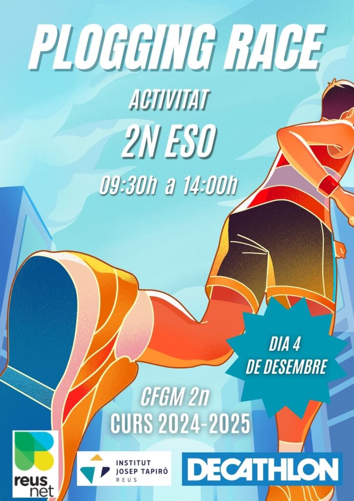 El passat 4 de desembre, l’Institut Josep Tapiró de Reus va acollir una emocionant Plogging Race, organitzada per l’alumnat del Cicle Mitjà de Guia en el Medi Natural i de Temps de Lleure. Aquesta activitat, que combina córrer i recollir deixalles, va ser una gran oportunitat per fomentar la consciència ambiental entre els alumnes de 2n d’ESO.