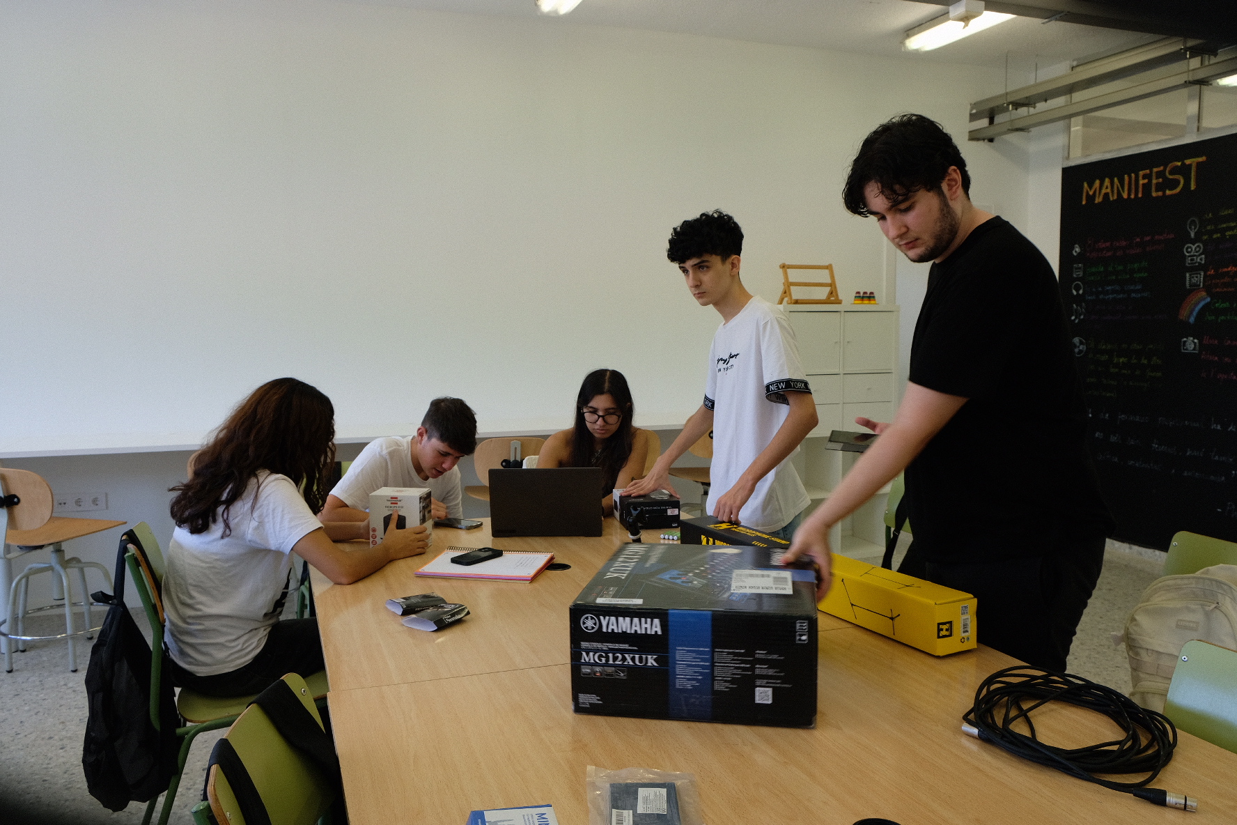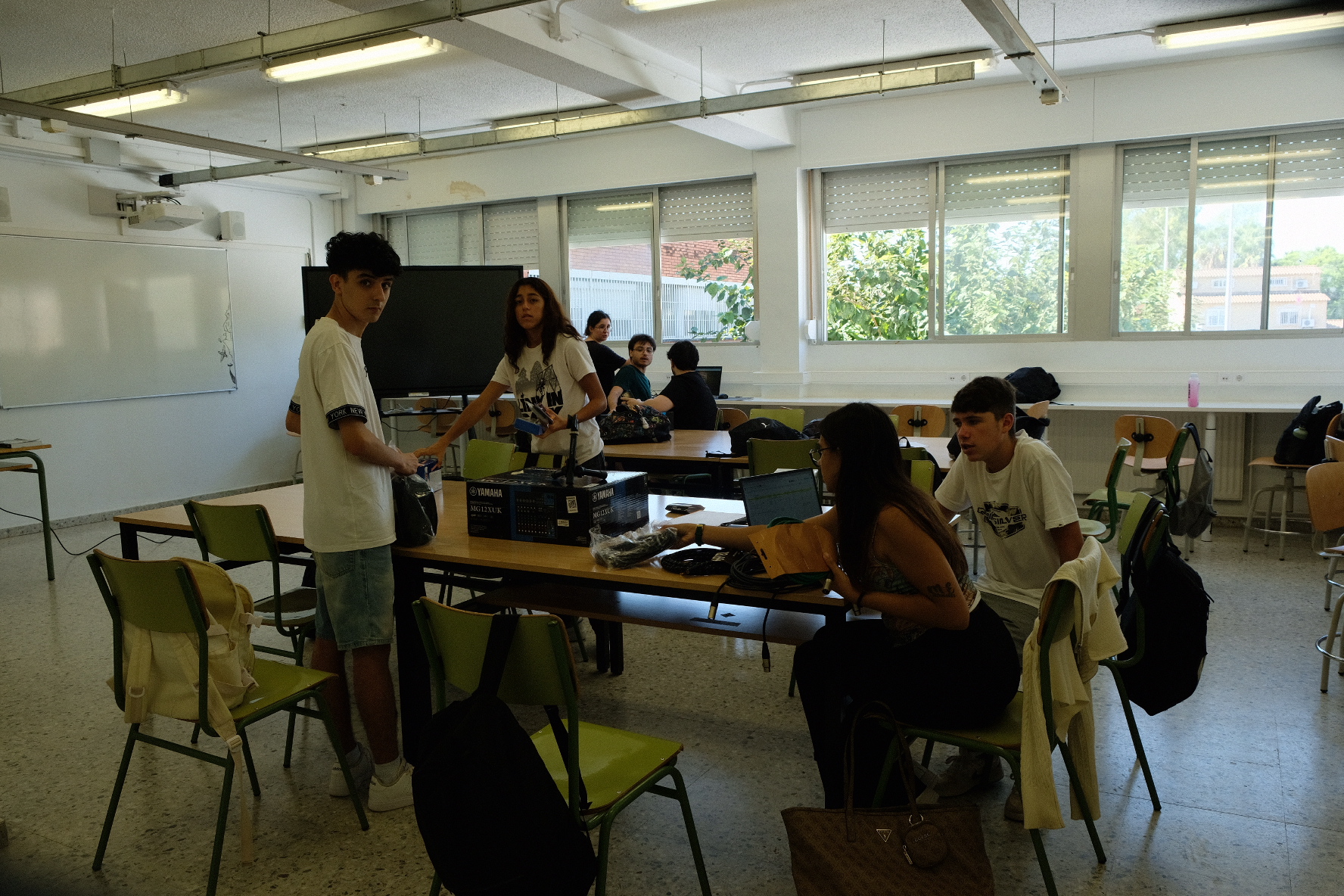 L’ambient ha estat molt positiu i ple de curiositat: ja s’han començat a familiaritzar amb taules de so i equips bàsics de mescla, alhora que treballen la cohesió del grup i les dinàmiques de col·laboració.