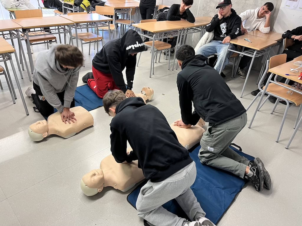 L’alumnat de 2n GMN ha fet un curs de formació per aprendre a aplicar el protocol de reanimació cardiopulmonar utilitzant el Desfibril·lador Extern Automàtic DEA.
