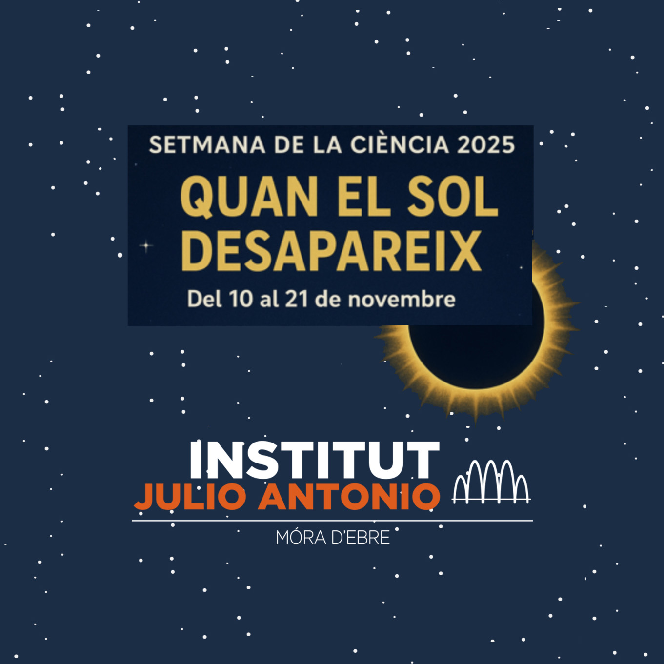 La setmana del 14 al 21 de novembre hem celebrat la Setmana de la Ciència al nostre Institut Julio Antonio. Enguany l’hem dedicada a un esdeveniment extraordinari: l’eclipsi solar total del proper 12 d’agost de 2026, que a les nostres terres podrem observar durant més d’un minut. Tindrem un alineament gairebé perfecte de la Lluna, […]