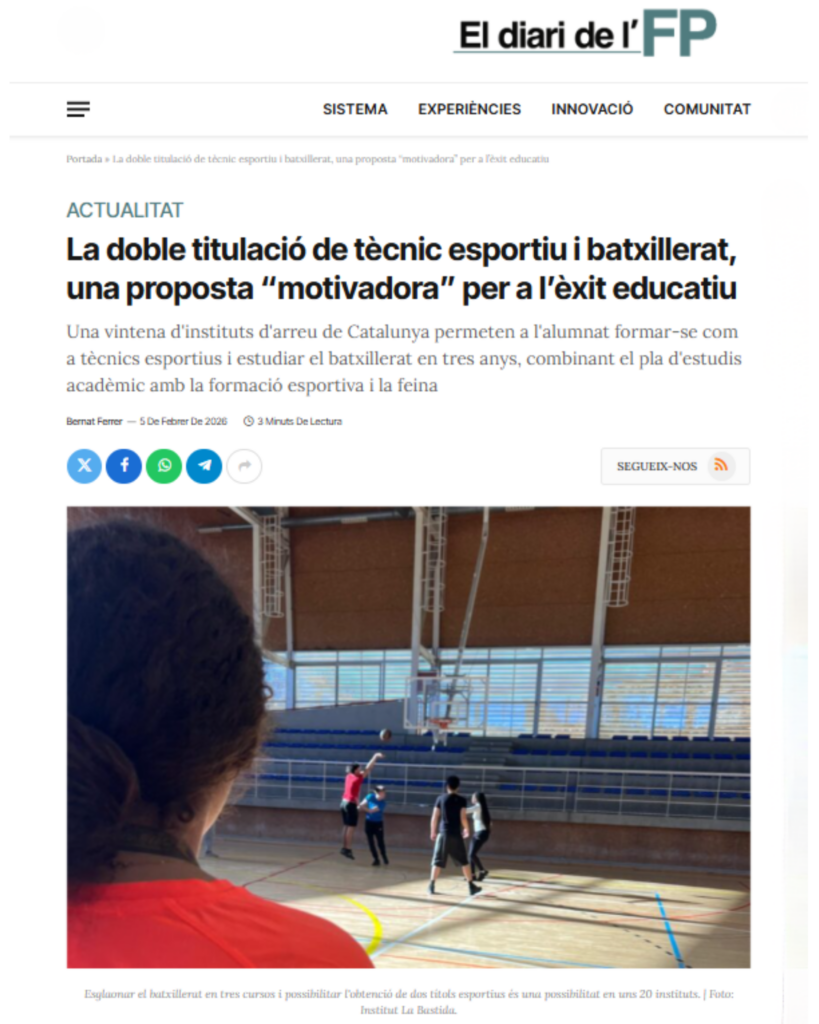 El curs 2025-2026, l’Institut La Bastida i l’Institut Les Vinyes de Santa Coloma de Gramenet iniciem de manera conjunta el Batxillerat Esportiu. Es presenta com a una nova oferta educativa al Barcelonès Nord.
