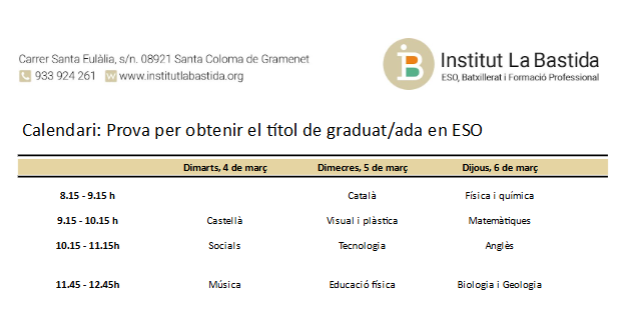 Podeu consultar el calendari i horari de les proves aquí: