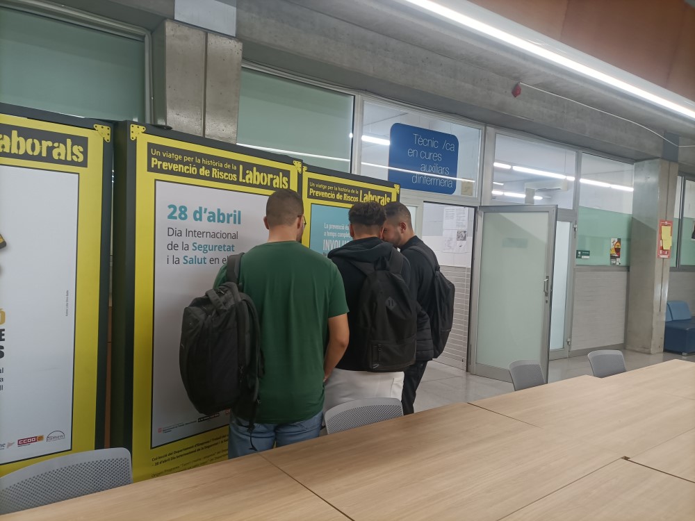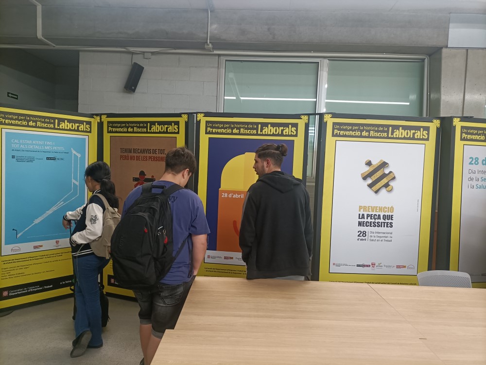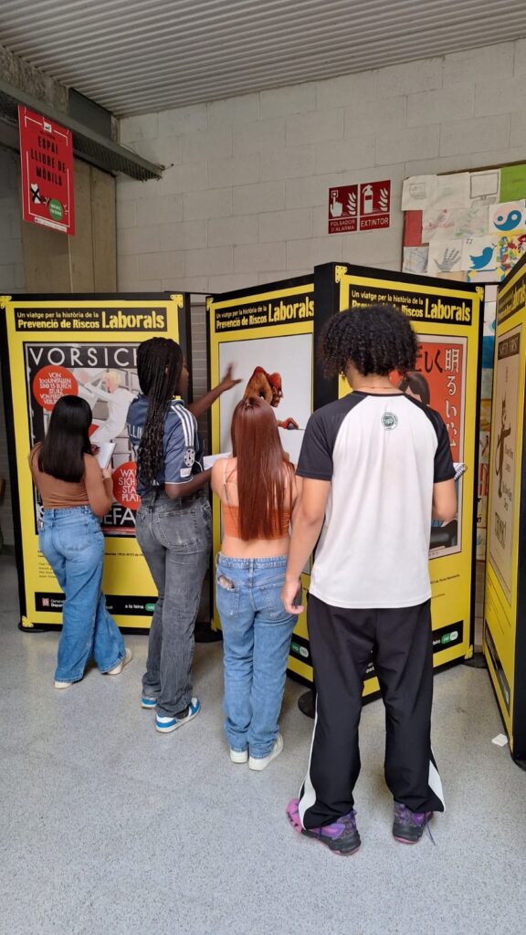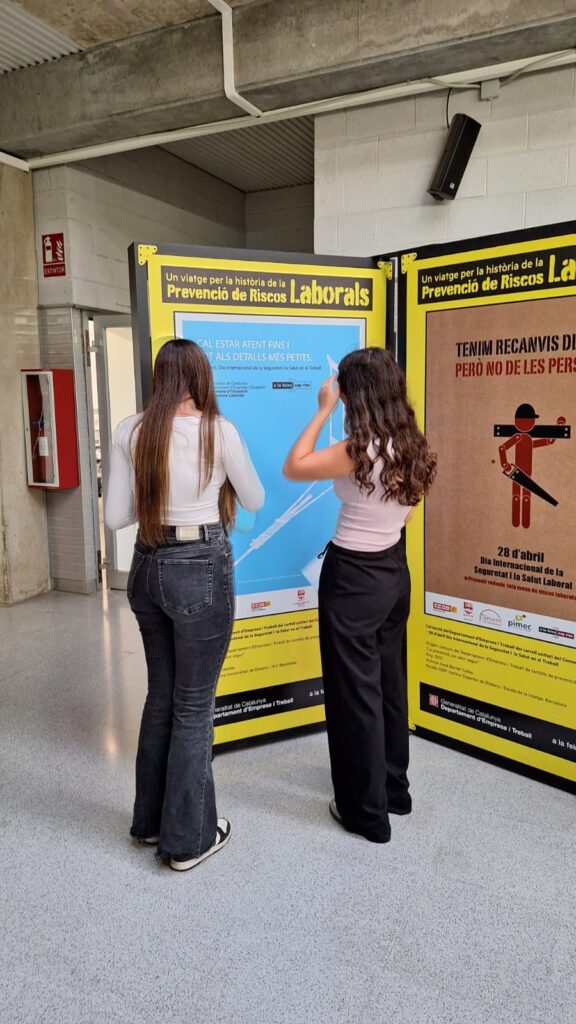 En el context del contingut de PRL impartit pel professorat de FOL, l’alumnat de cicles formatius ha tingut l’oportunitat de visitar i, treballar posteriorment a classe, l’exposició itinerant “Un viatge per la història de la prevenció de riscos laborals” formada per una col·lecció de cartells, la finalitat dels quals és fomentar la cultura preventiva front qualsevol classe d’accident o malaltia a la feina.