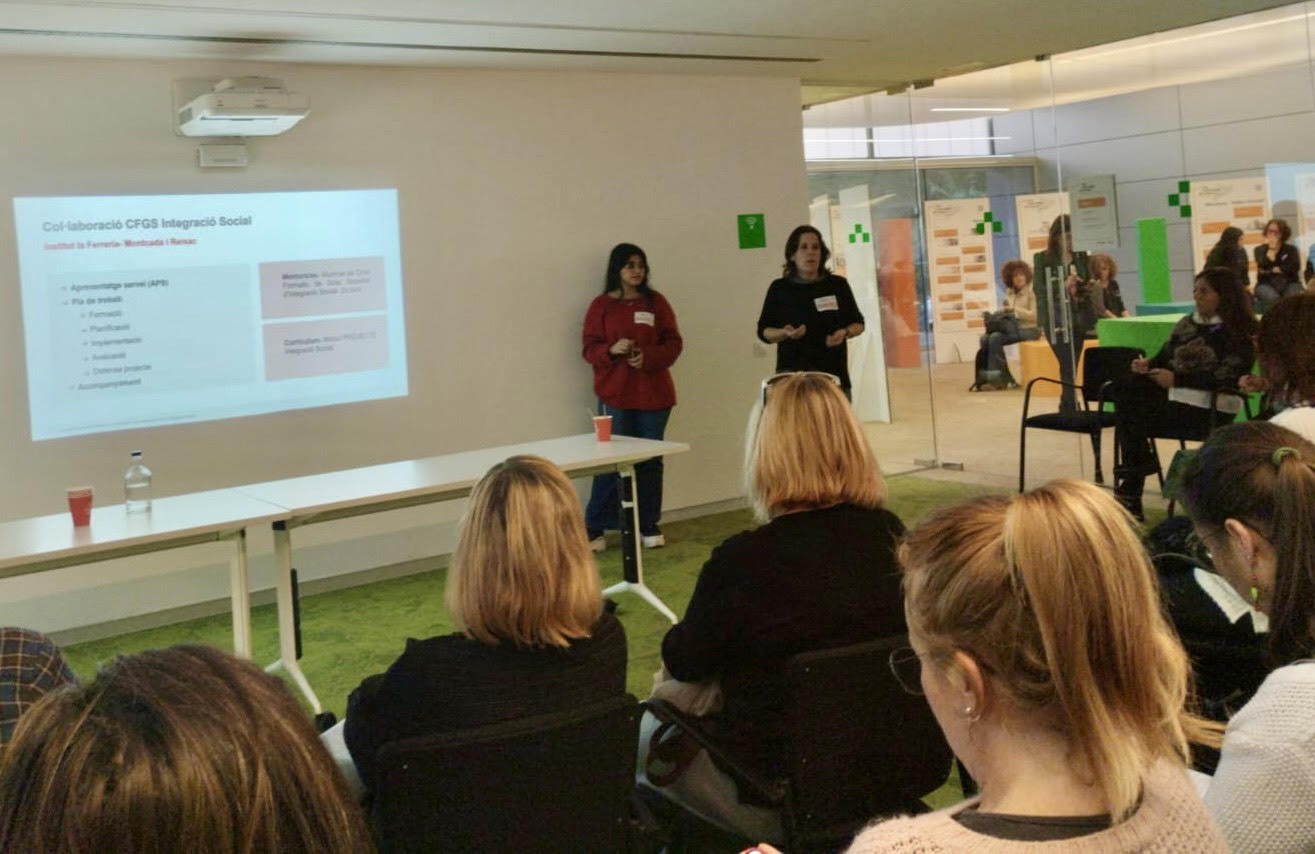Un dels projectes seleccionats per presentar va ser “Mentoria social – EnTàndem”, del PEE de Montcada i Reixac, amb el qual col·labora el nostre institut. Aquesta col·laboració està liderada per l’alumnat del CFGS d’Integració Social, que dins del mòdul de projecte, participa com a mentor de diferents joves de 3r de l’ESO amb trobades setmanals de dues hores en què realitzen activitats conjuntament. L’objectiu principal dels i les mentores és el de crear un vincle amb els/les respectius/es mentorats/es i realitzar l’acompanyament adequat en un moment vital en què acostumen a aparèixer neguits que sovint costen de gestionar.