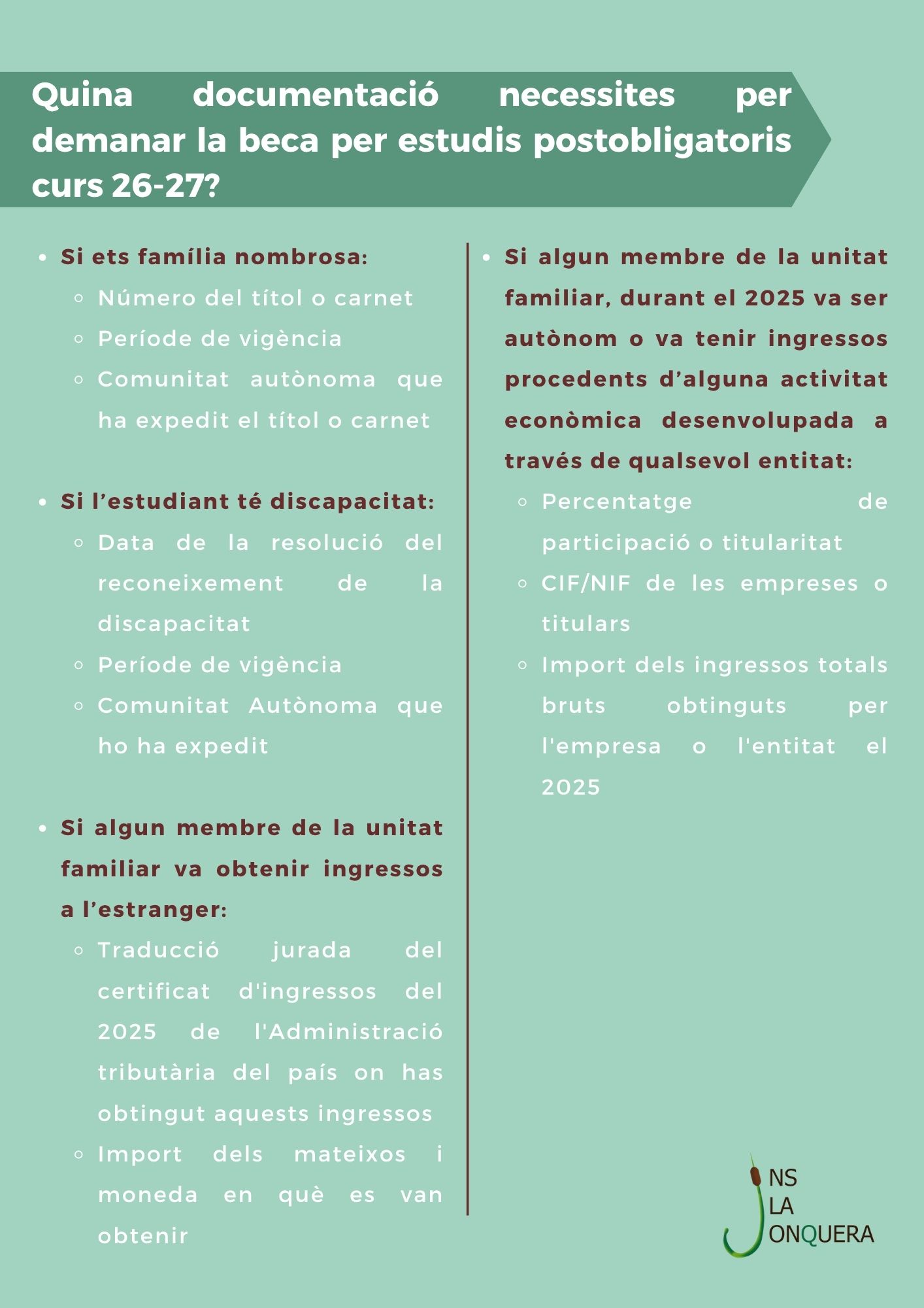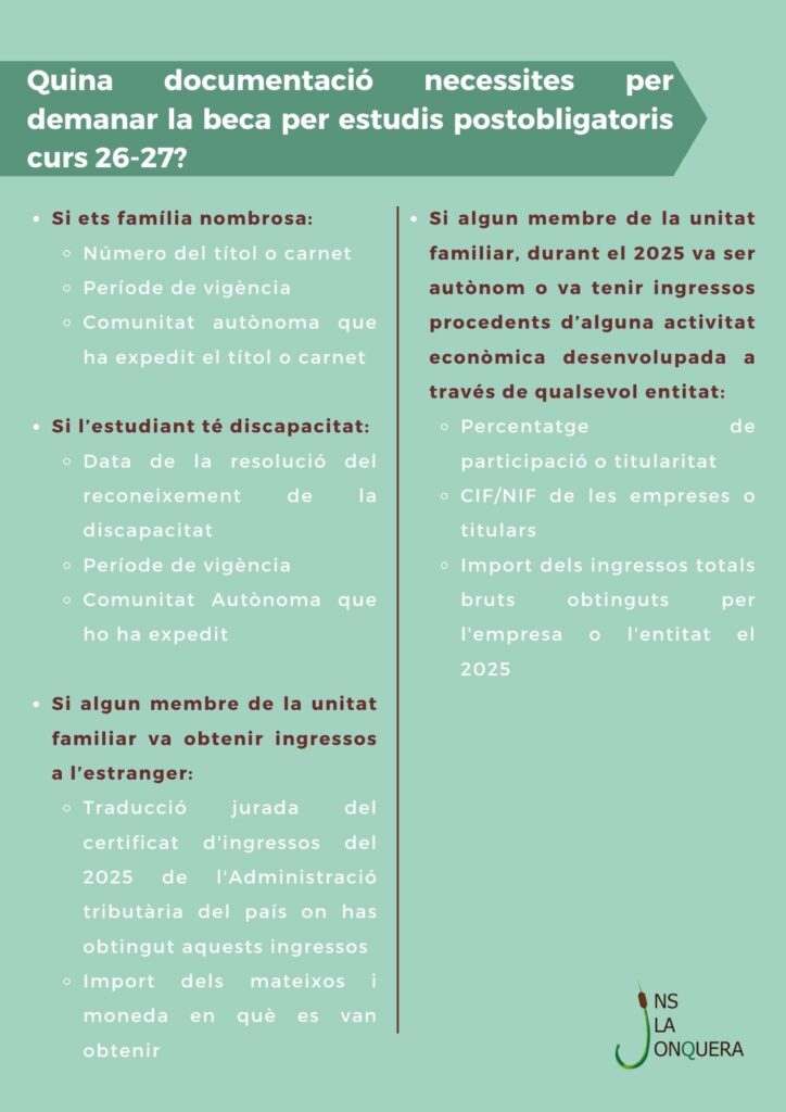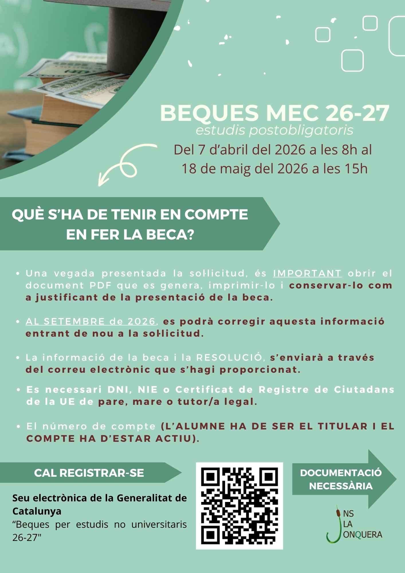 En el següent enllaç teniu la informació sobre les beques d’estudis postobligatoris, per si voleu demanar-la.