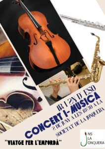 Us convidem al concert d’I-Música de l’alumnat de 1r i 2n d’ESO, que tindrà lloc a La Societat de la Jonquera el divendres 2 de juny a les 18.30 h. Us hi esperem!
