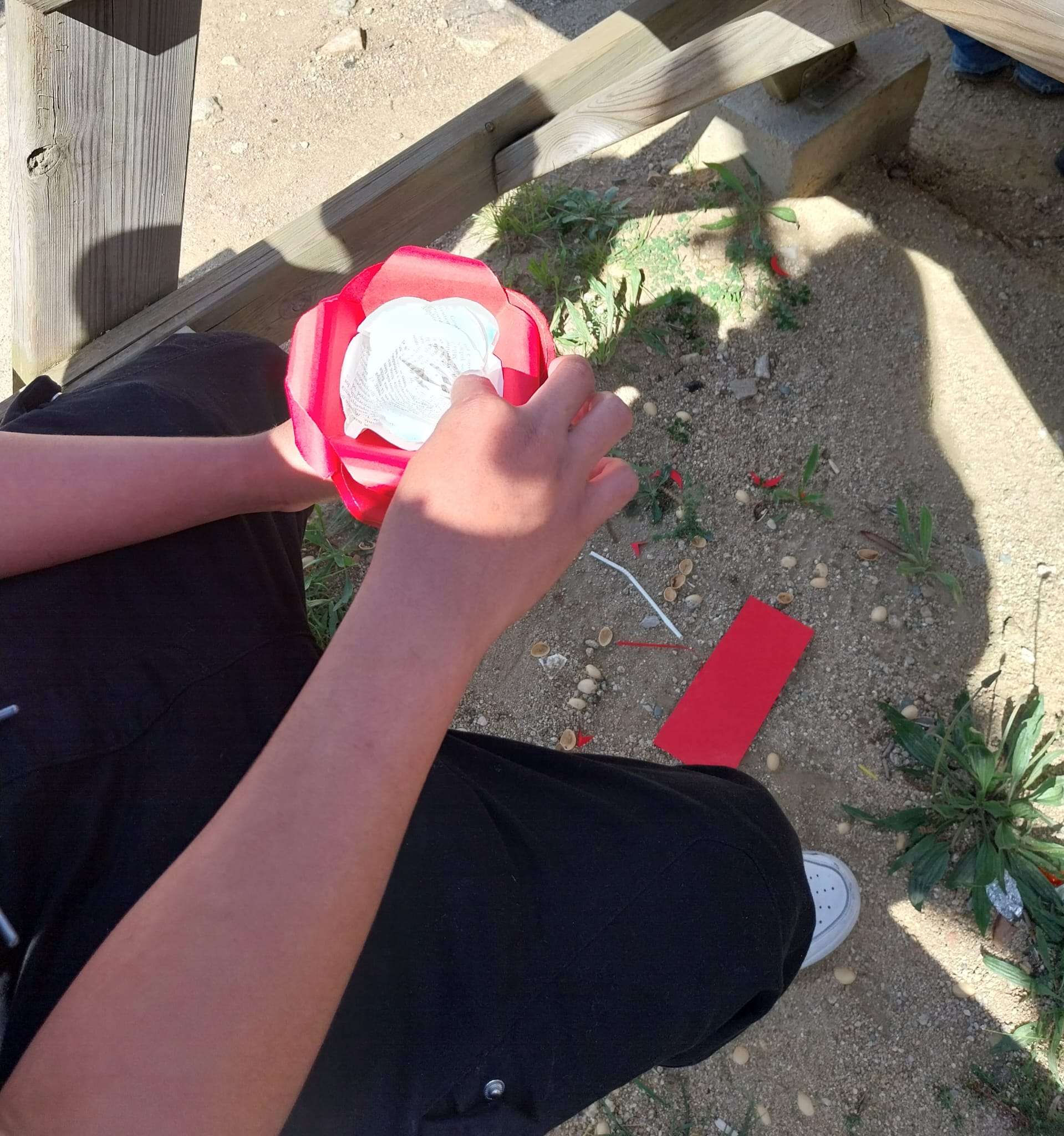 La Comissió d’Escoles Verdes va ser l’encarregada de dinamitzar el pati amb la parada d’intercanvi de llibres usats i alguns tallers de manualitats (elaboració de roses i punts de llibre, formació de figures humanes, etc.).