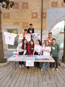 Al llarg de tot el matí, es van encarregar de dinamitzar la parada i explicar l’intercanvi de llibres que té lloc al nostre centre per Sant Jordi, en el desenvolupament de la Diada del llibre i la Rosa. També van explicar totes les altres actuacions ambientals que es fan: recollida de joguines, Projecte Rius, sistema de reciclatge, fabricació d’un “boc’n roll”, etc.