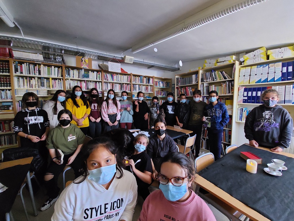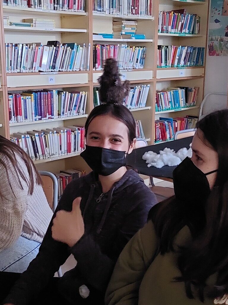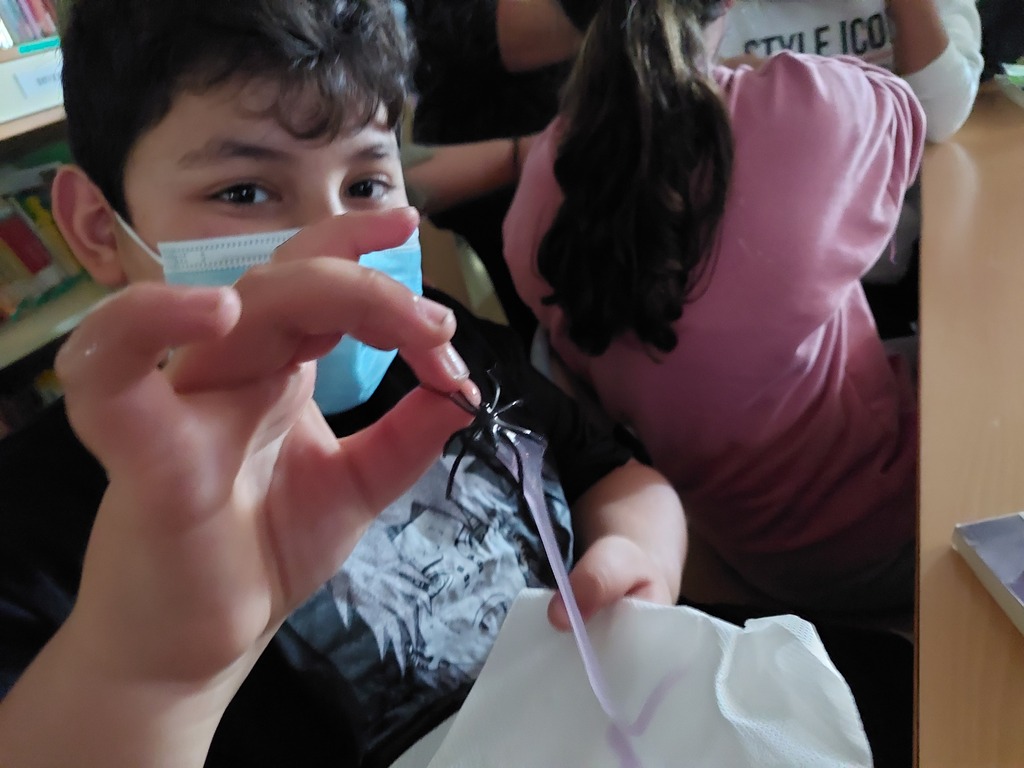 Al llarg de la primera sessió del curs 2021-2022 del Club de Lectura, els 20 alumnes que hi van assistir van buscar objectes amagats per la biblioteca del centre, els van relacionar amb els diferents relats del llibre Històries de fantasmes, de Roald Dahl, i van buscar tota mena d’animals fastigosos (de plàstic!) en una olla, que simulava la d’una bruixa, plena de slime. I tot això pràcticament a les fosques, ja que, gràcies a alguns alumnes de Tecnologia, que van preparar uns cartrons a mida, es va poder enfosquir la biblioteca suficientment com per a que els alumnes haguessin d’il·luminar-se amb unes espelmes led. Va ser tota una experiència per als nous membres del Club!