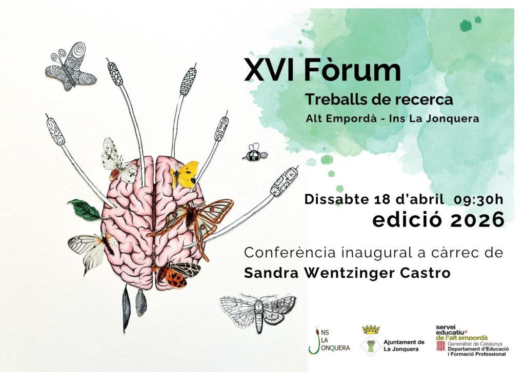 Us convidem formalment al XVI Fòrum de Treballs de Recerca de l’Alt Empordà que, enguany, es realitzarà al nostre centre el proper dissabte dia 18 d’abril a partir de les 09:30 del matí. Aquesta trobada és una gran ocasió per conèixer de primera mà els millors treballs de recerca de l’alumnat de tota la comarca i, aquest any, tenim l’honor de ser-ne la seu. L’acte inaugural comptarà amb la presència de Míriam Lanero, alcaldessa de La Jonquera; Miquel Marcé, Director dels Serveis territorials d’Educació de Girona; Laura Espinosa, directora de l’INS La Jonquera i Sandra Wentzinger, exalumna del centre que durà a terme la conferència inaugural. Tot seguit, els alumnes seleccionats exposaran els seus treballs de recerca en diverses aules del centre. Us animem a venir i a viure l’experiència de primera mà amb els vostres fills i filles.