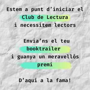 Com a conseqüència de les mesures contra la covid-19, no podem fer les sessions del Club de Lectura presencials, així és que hem decidit que les xarxes socials seran les nostres aliades en aquesta nova etapa. Crearem booktrailers, ens convertirem en booktubers i comentarem les lectures a través d’Instagram i Youtube. Però, sobretot, continuarem fent el que més ens agrada: gaudir de la lectura.