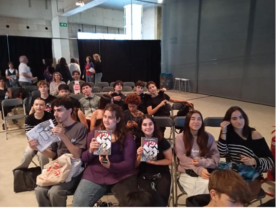 Un grup d’alumnes de les matèries de Literatura Universal i Literatura Castellana van assistir a aquesta trobada. Prèviament, a l’aula vam poder parlar sobre còmic, relacions familiars, la història recent d’Europa, l’art de les vinyetes…