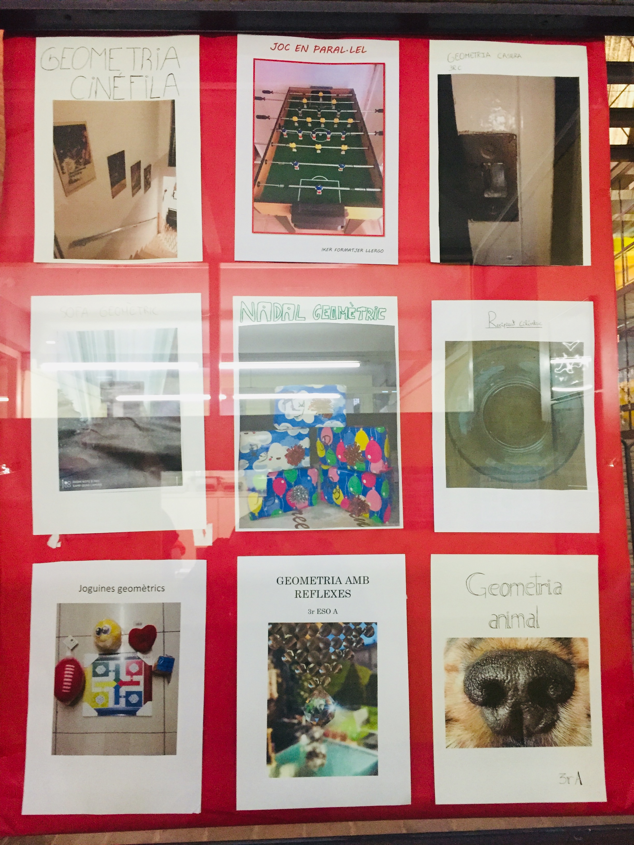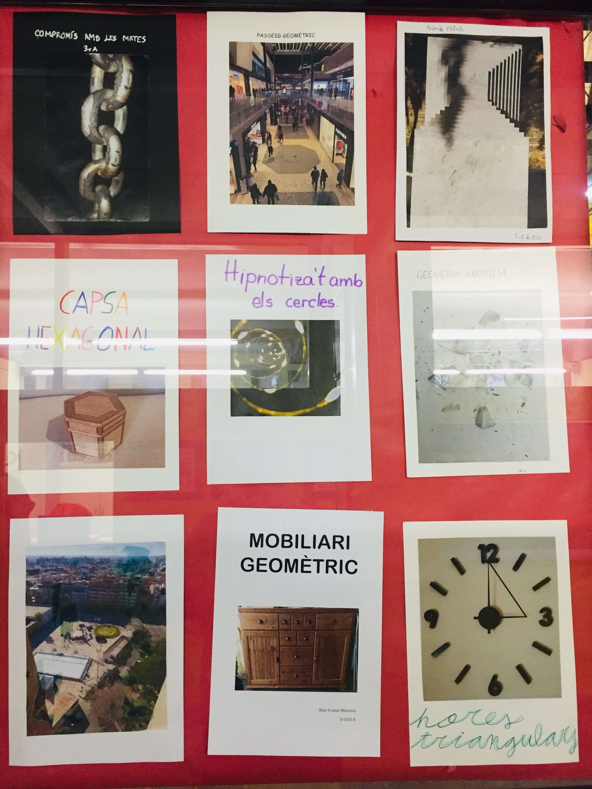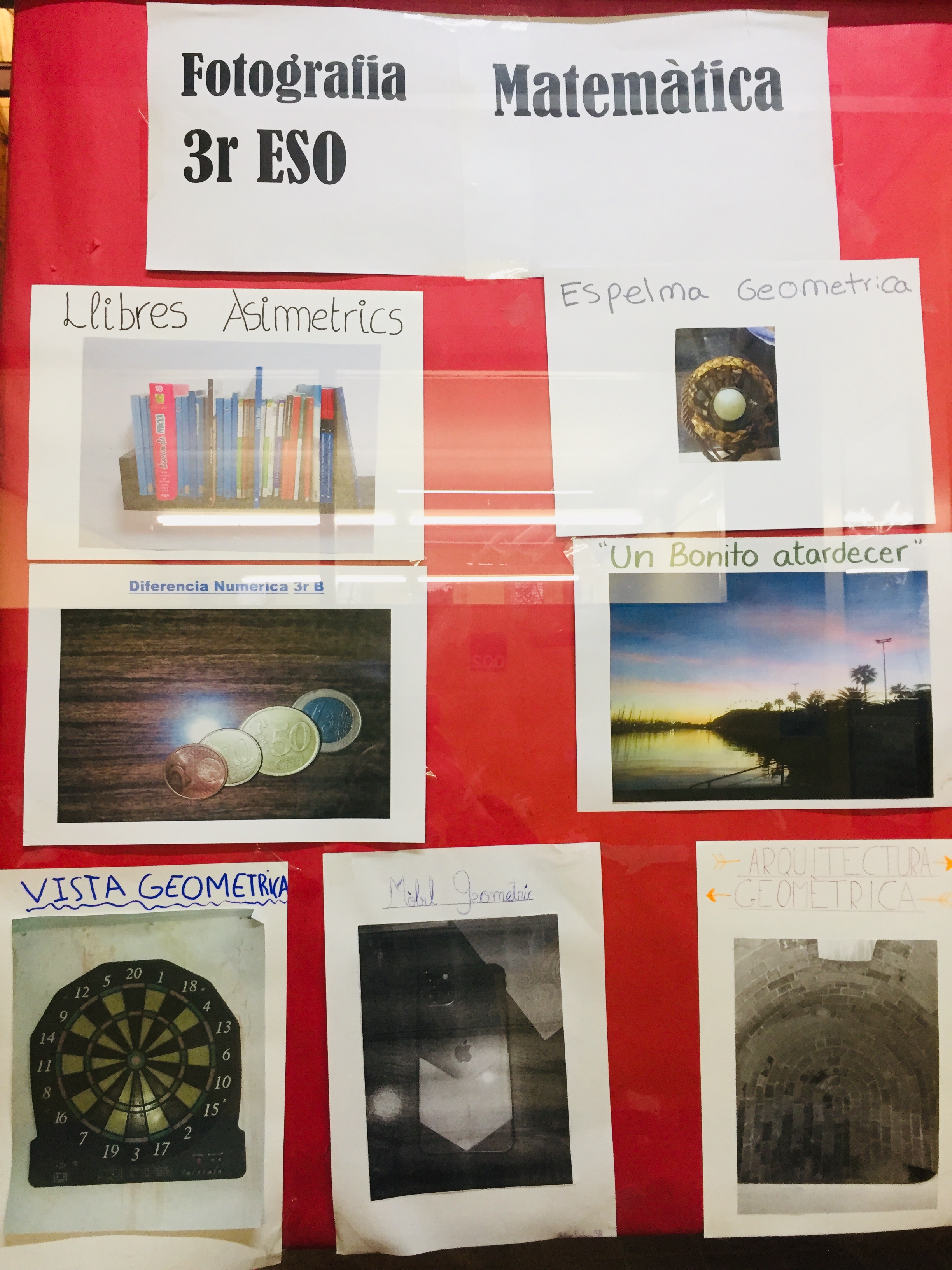 La fotografia guanyadora es presentarà al concurs de l’ABEAM (Associació per l’Ensenyament i Aprenentatge de les Matemàtiques de Barcelona). Si voleu veure les fotografies en viu i en directe, es troben penjades als vidres de la planta baixa de l’institut. L’alumnat de 3r ha proposat unes fotografies molt artístiques.