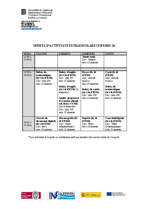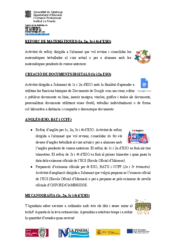 Informació del Departament d’Educació i Formació Professional per a les famílies.