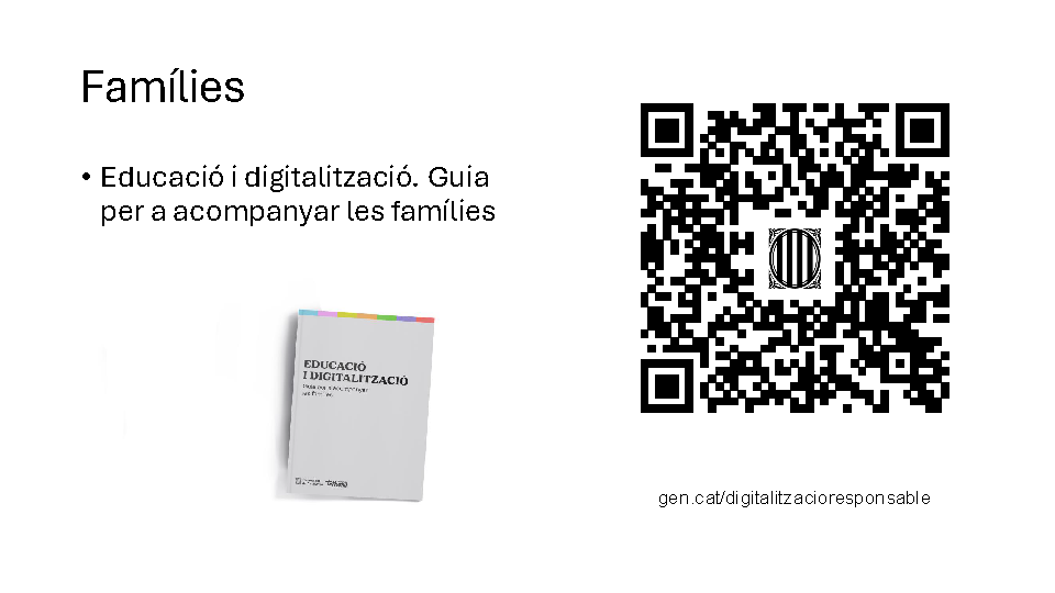Pla de digitalització responsable. Informació del Departament d’Educació i Formació Professional per a les famílies.