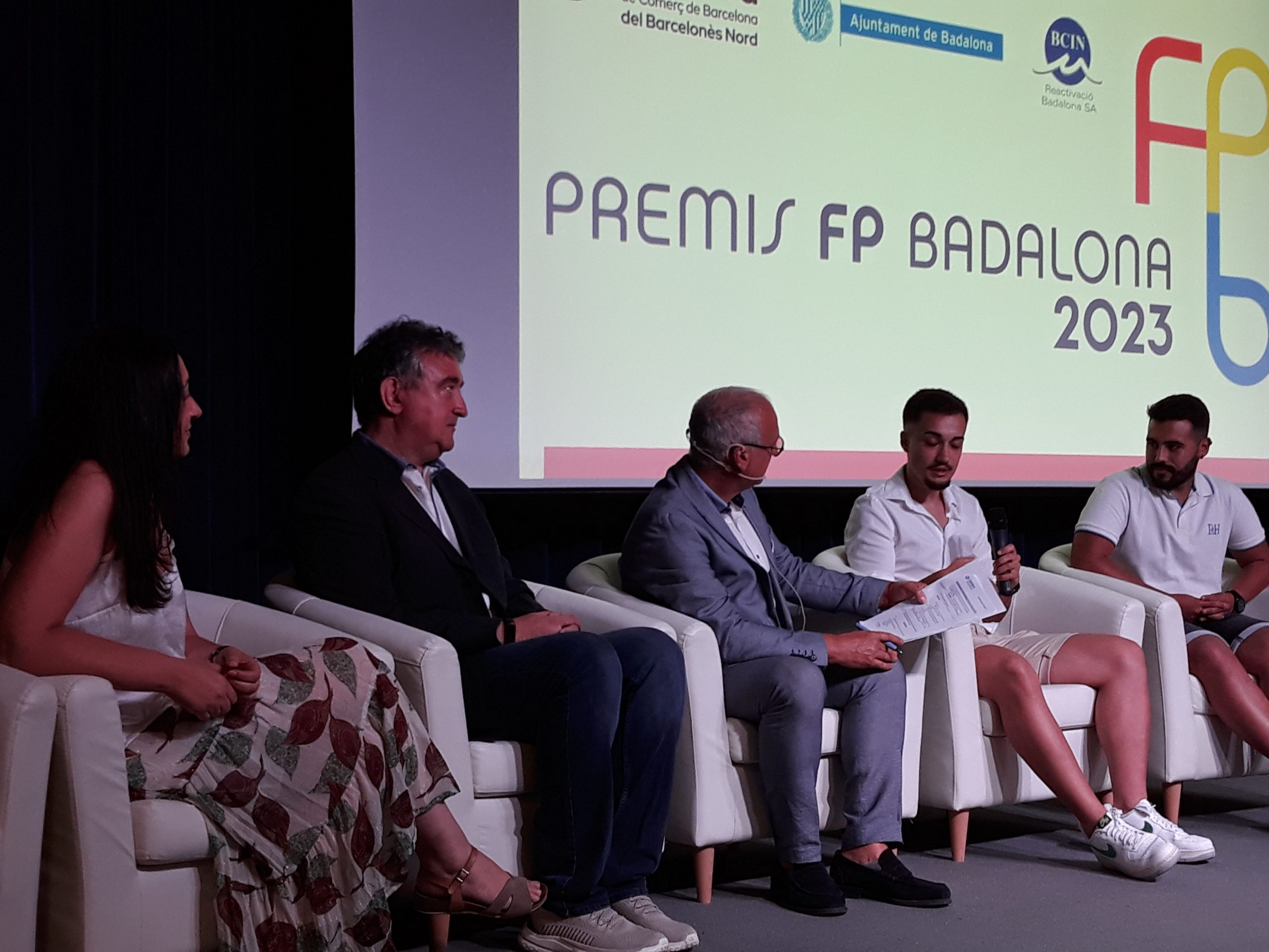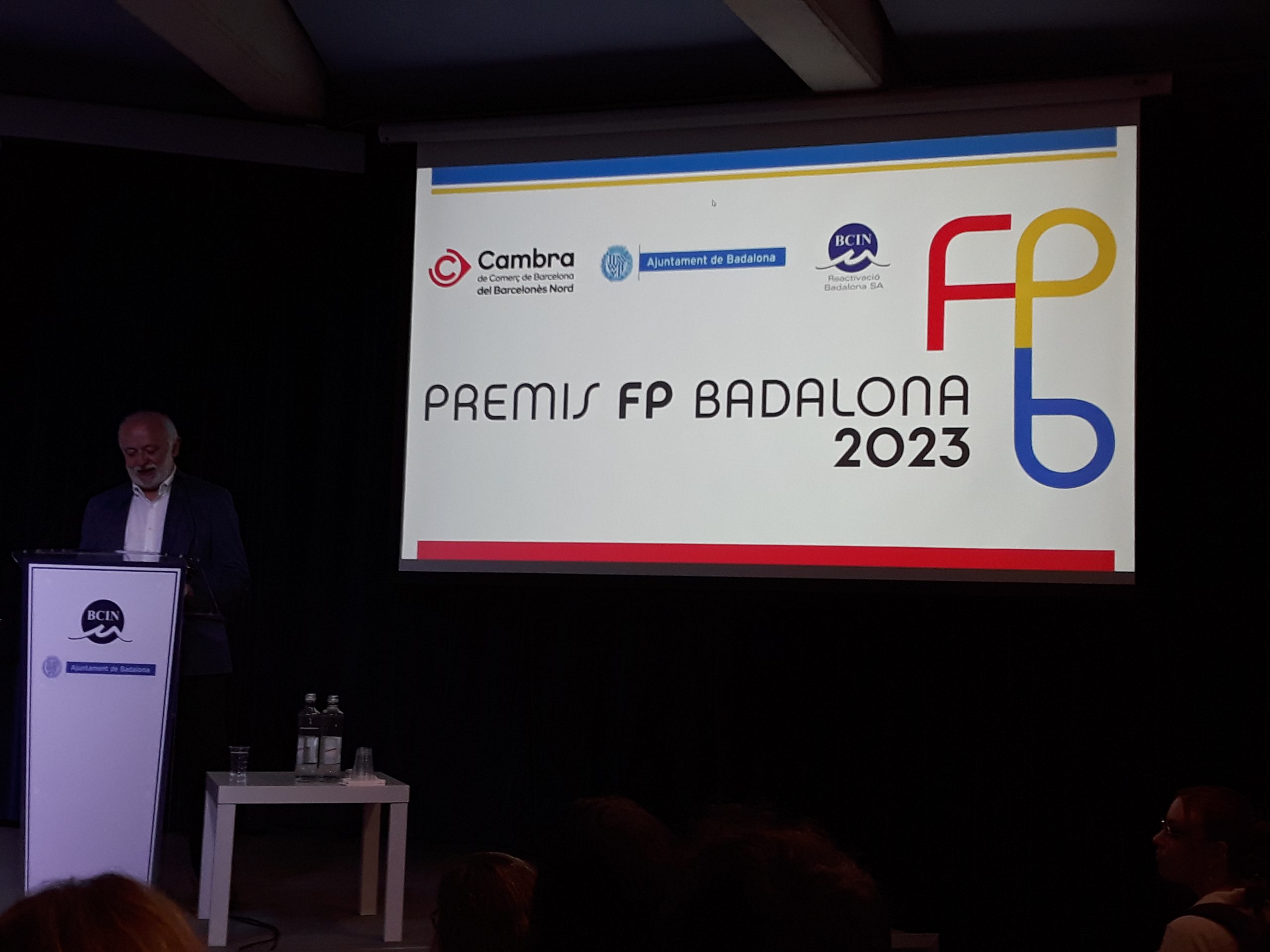 Dos alumnes del grau superior de Sistemes de Telecomunicacions i Informàtics de l’Institut La Pineda, Alfredo A. i Guillermo V., obtenen el 2n premi al millor projecte en aquesta 1a edició dels PREMIS FP BADALONA.