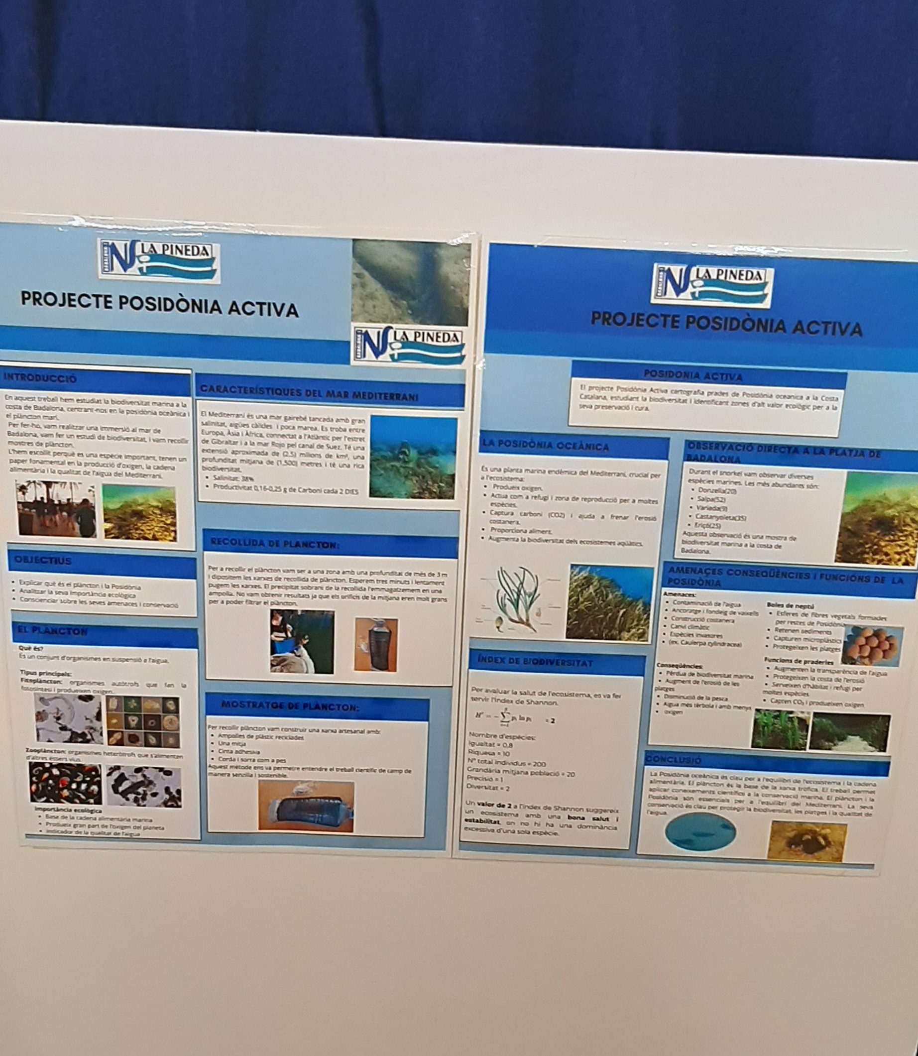 Posteriorment, van fabricar unes xarxes per agafar mostres de plàncton de l’aigua de Badalona, i es va estrudiar les diferents espècies més habituals, tant de fito com zooplàncton. Paral·lelament, han estudiat les característiques de l‘aigua del Mediterrani i la importància de la Posidònia oceànica en els ecosistemes marins.