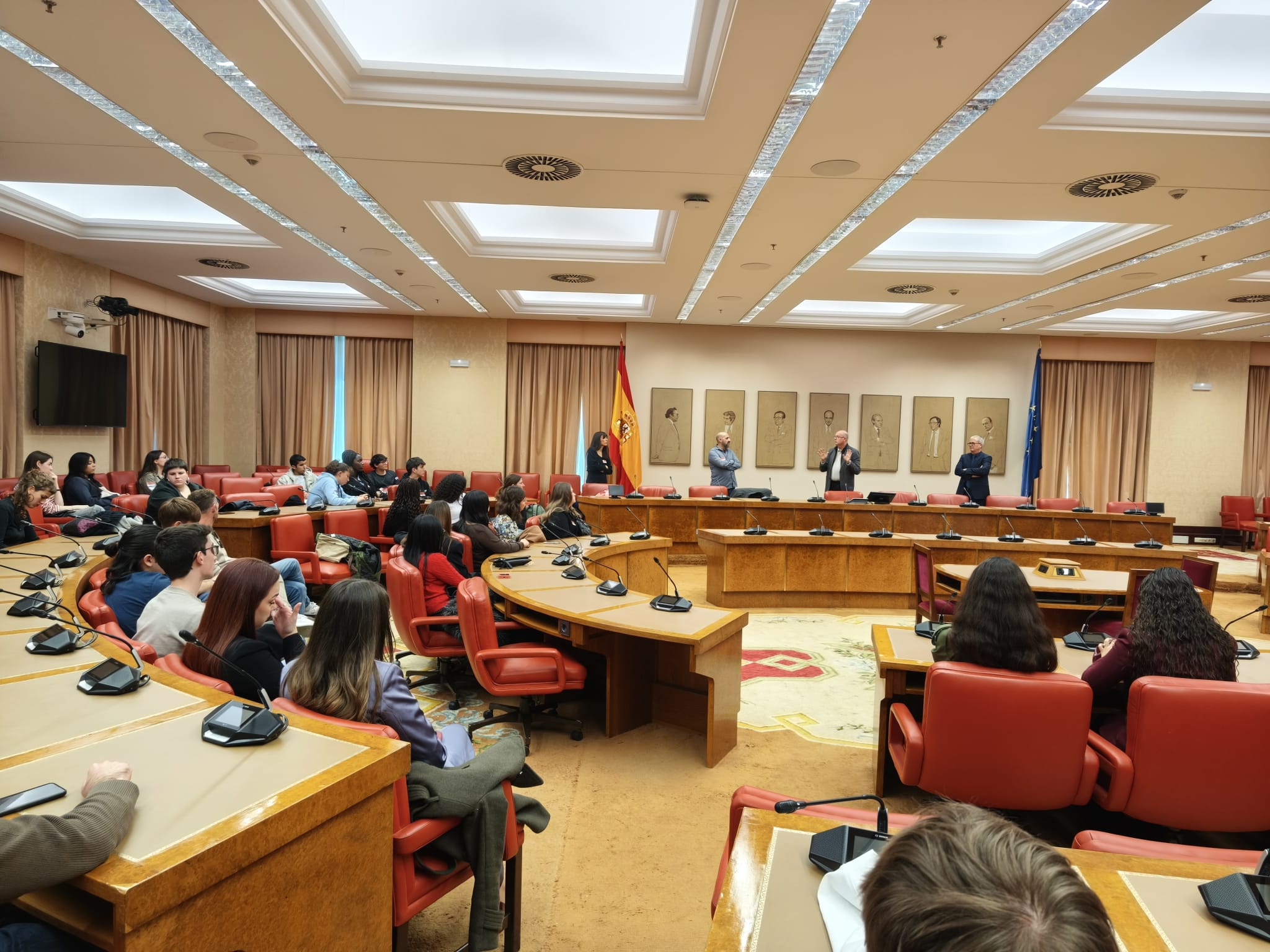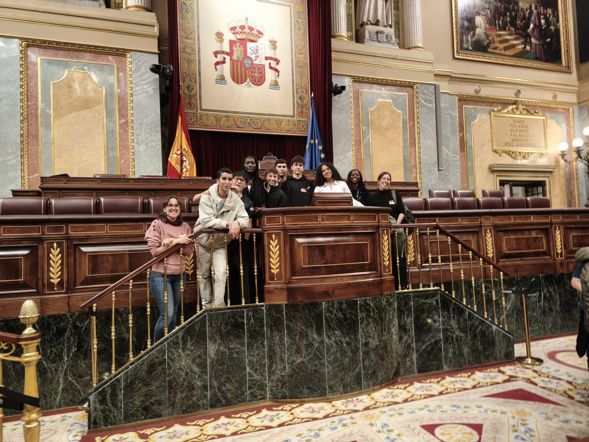 El primer dia vam matinar de valent per agafar el primer tren i arribar puntuals a la cita. Vam poder visitar i conèixer el funcionament intern del Congrés de la mà del diputat del PSC José Zaragoza i del senador Jordi Gaseni d’ERC. Ens van explicar la important i complexa tasca parlamentària d’arribar a acords entre persones d’idees diferents, així com el canvi que han notat darrerament amb l’entrada de pràctiques parlamentàries que busquen la confrontació gratuïta per erosionar els valors democràtics.