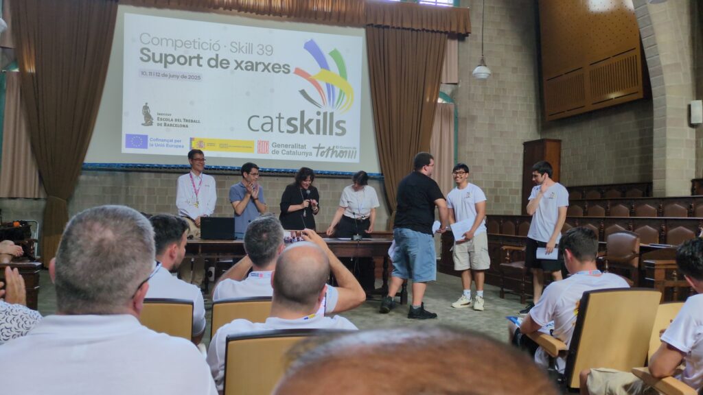 Els Catskills són les proves de formació professional on alumnes de diversos cicles competeixen en diferents disciplines relacionades amb els seus estudis, posant en pràctica habilitats tècniques i professionals en entorns reals i exigents. En el cas de Suport de Xarxes, la prova consisteix en una sèrie de desafiaments tècnics que inclouen la configuració de dispositius de xarxa, l’aplicació de mesures de seguretat, la instal·lació i configuració de sistemes operatius com Windows i Linux, així com la detecció i resolució d’incidències habituals en un entorn de xarxa empresarial.