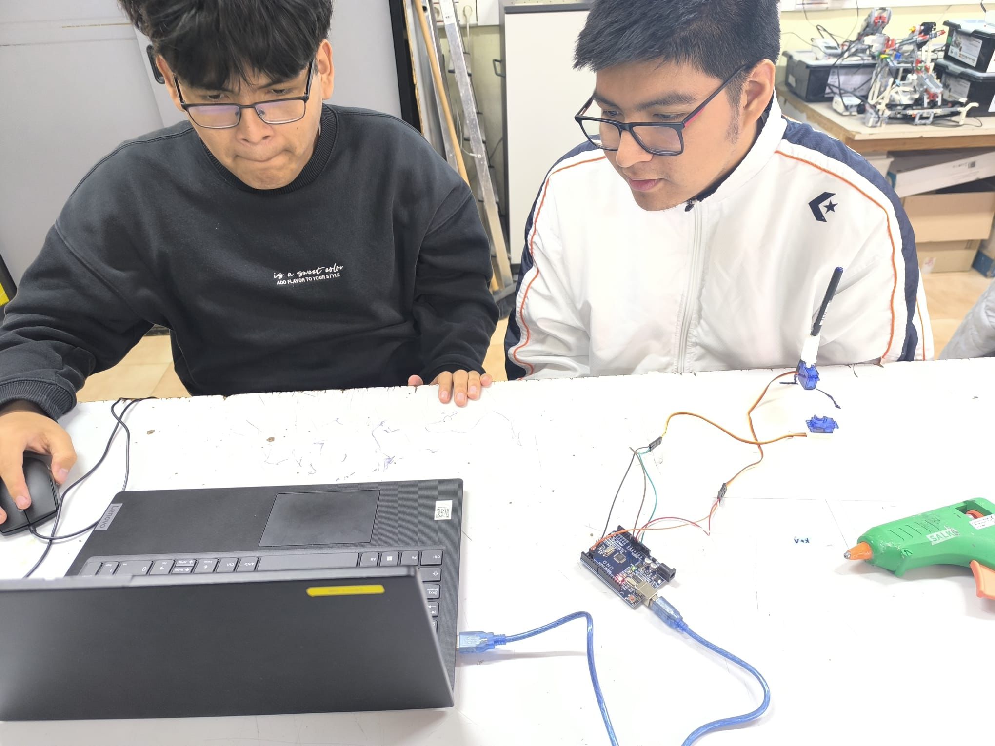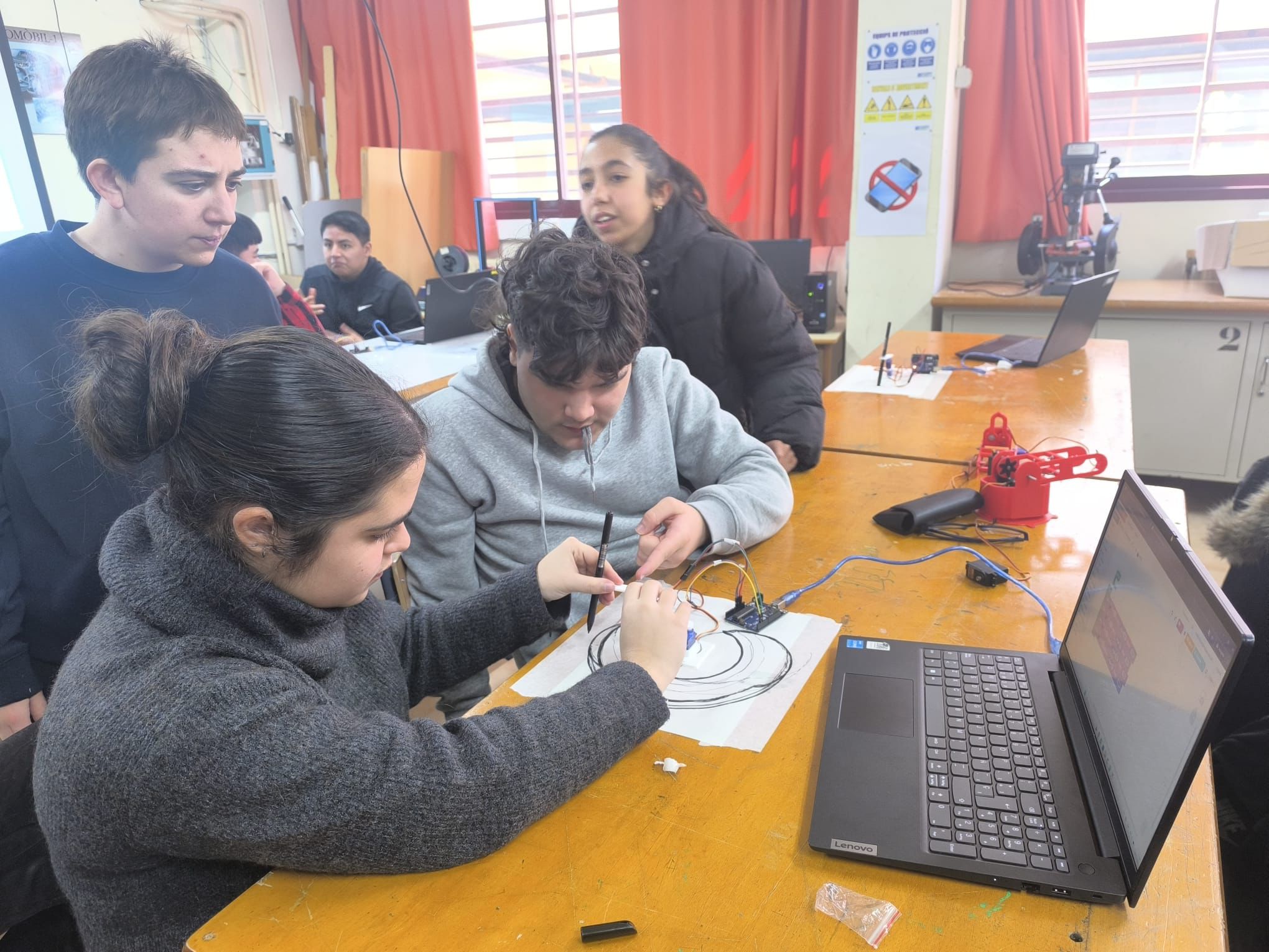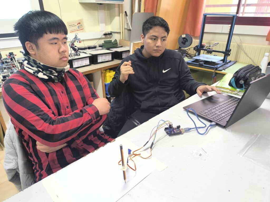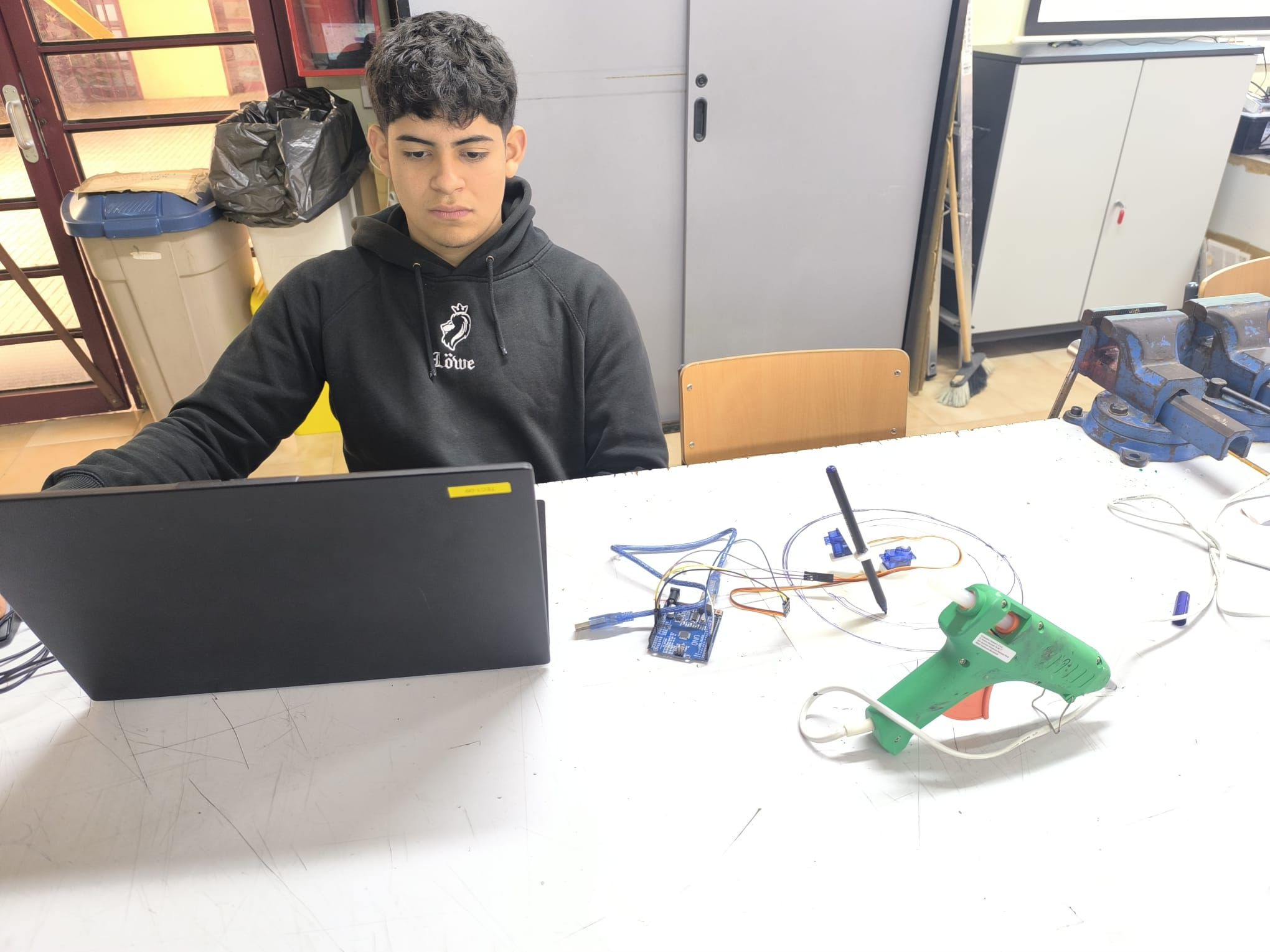 Per posar en pràctica els coneixements adquirits, els estudiants van construir un braç robòtic amb peces impreses en 3D, un retolador i diversos microservomotors, capaç de dibuixar arcs i cercles de diferents formes. 🎨