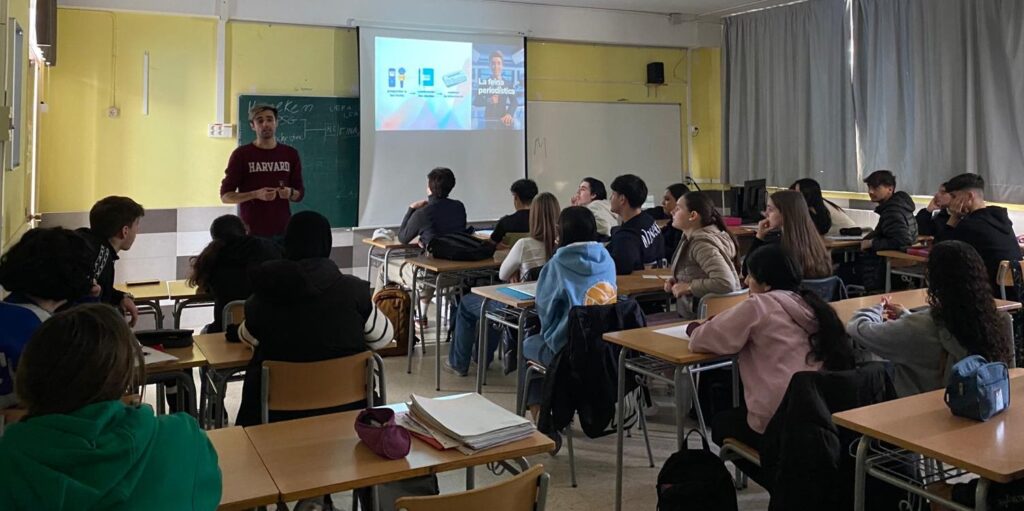 El periodista Adrià Soler ha impartit un Taller d’Educació mediàtica a l’alumnat de primer de Batxillerat en el marc del programa Premsa a les escoles, una iniciativa conjunta del Col·legi de Periodistes de Catalunya i la Comissió Europea.