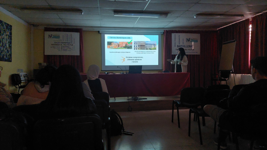 Estava orientada a l’alumnat de l’itinerari cientifico-tecnològic que cursa les matèries de biologia i biomedicina. L’objectiu va ser explicar els passos per fer una carrera científica i les diferents possibilitats que hi ha al llarg d’aquesta: