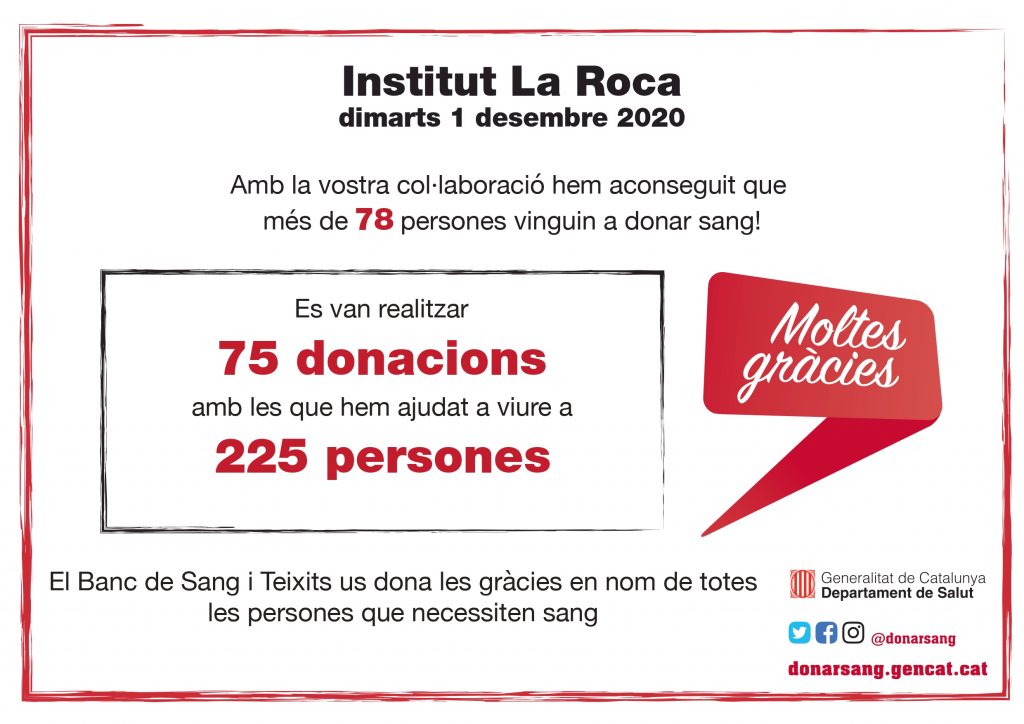El passat 1 de Desembre a l’institut de la Roca del Vallès hi va haver la donació de sang organitzada