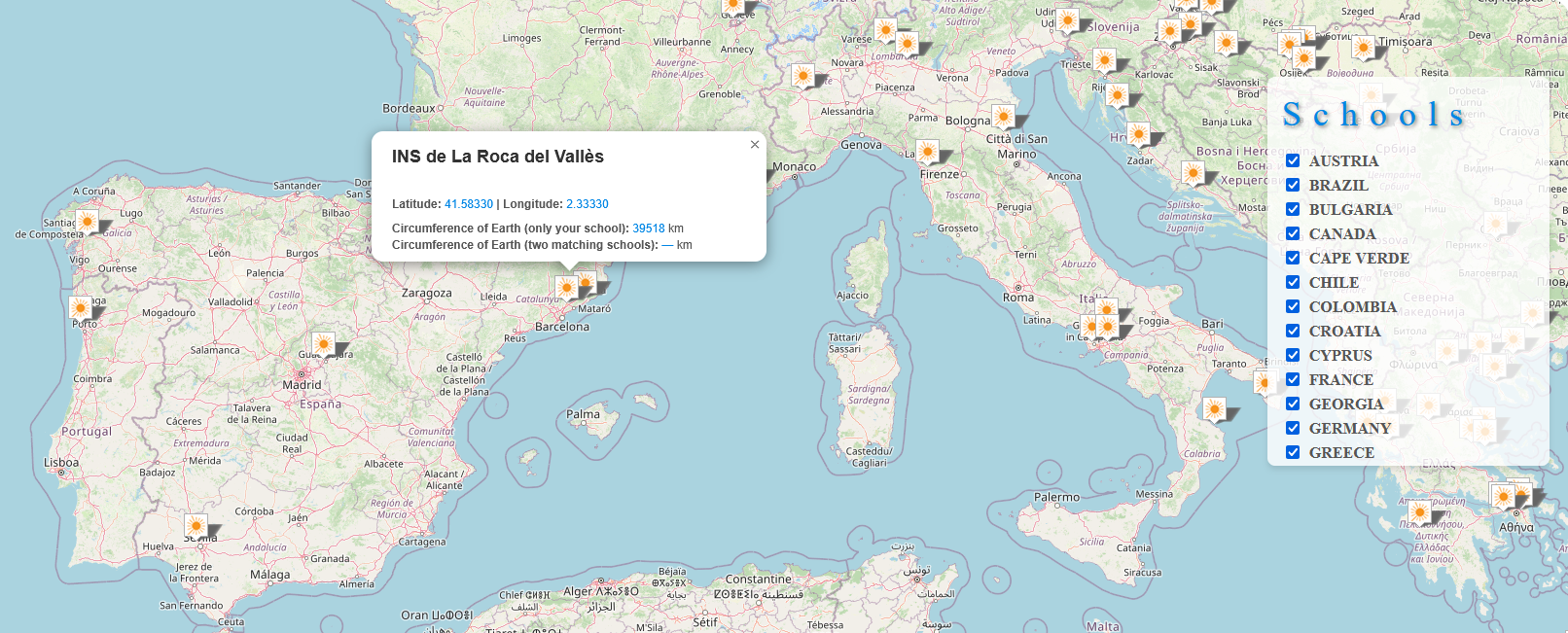 Utilitzant la distància geogràfica de 4268 km fins a l’Equador i aplicant una regla de tres Angle/360º=Distància/Circumferència, s’obté una circumferència terrestre de 39518 km. En comparació amb la mesura real de 40.075 km, aquest resultat presenta un error aproximat del 2 %.