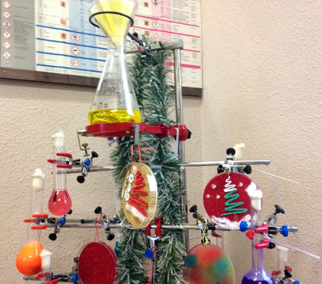 Com va sent ja una tradició, els alumnes del grup de Primer del CFGS de Laboratori d’anàlisi i de control de qualitat han muntat i guarnit el nostre peculiar arbre de Nadal.