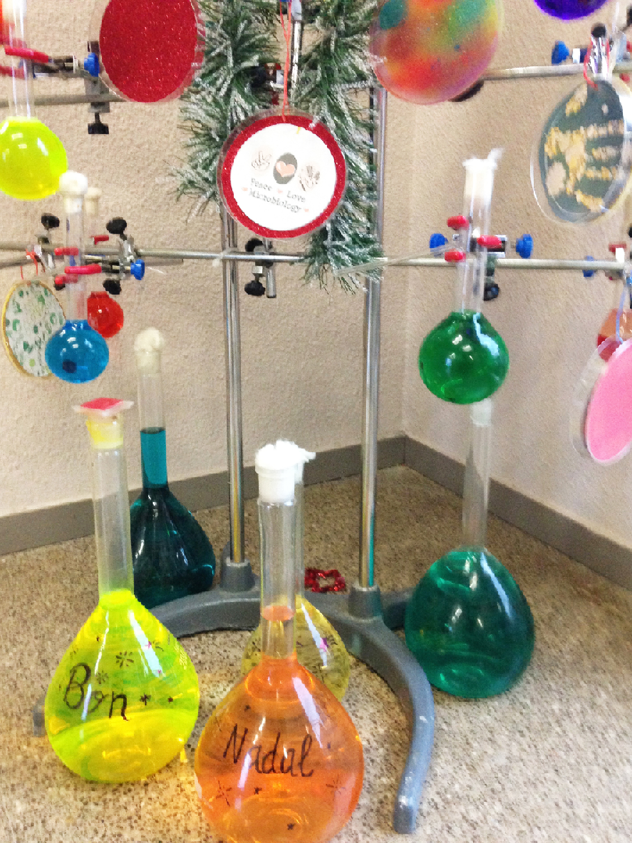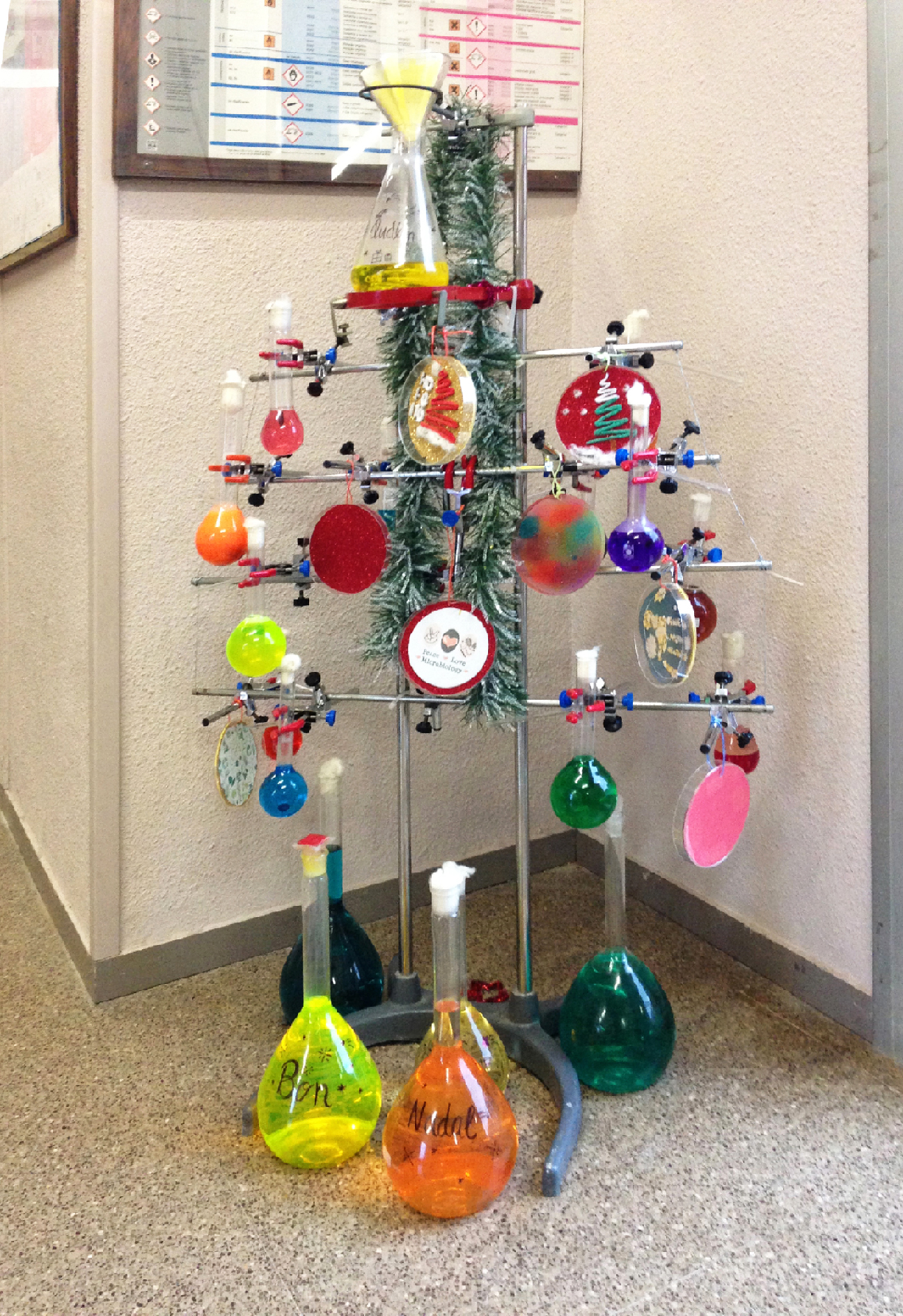 Com va sent ja una tradició, els alumnes del grup de Primer del CFGS de Laboratori d’anàlisi i de control de qualitat han muntat i guarnit el nostre peculiar arbre de Nadal.
