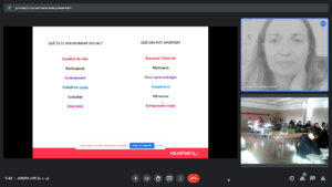 Des d’Aprenentatge servei i ciutadania, l’alumnat de 3r ESO ha pogut gaudir d’una jornada de sensibilització envers el voluntariat de la mà de Marina López, tècnica de promoció comunitària del voluntariat. La xerrada s’ha fet de forma telemàtica i ha suposat un acostament de l’alumnat al món del voluntariat i de la contribució solidària a la societat.