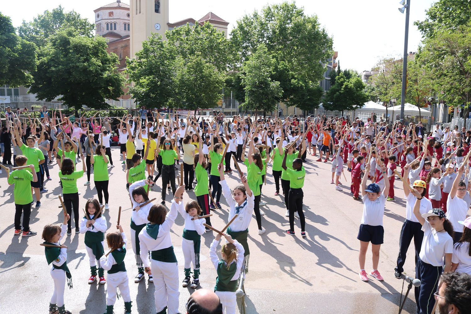 Des del tastet del ball de bastons que es va dur a terme en els tallers del darrer dia de classe del passat mes de desembre, una trentena d’alumnes s’han animat aquest segon trimestre a crear tres grups de ball de bastons que, encapçalats per l’Adrià, han confeccionat el ball de lluïment dels capgrossos, han realitzat dues tipologies de sardanes i han preparat fins a set coreografies de Ball de Bastons.
