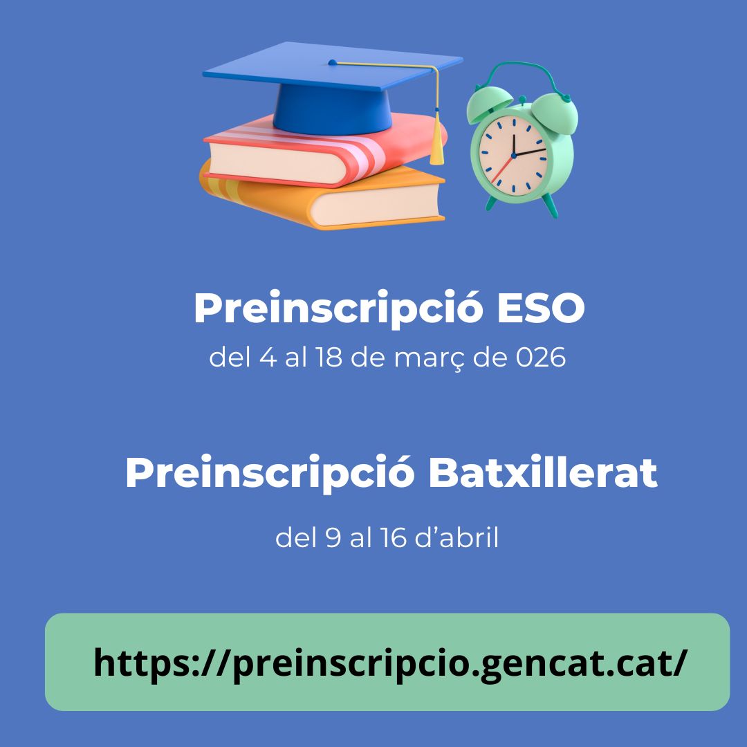 - Preinscripció escolarPendent la data de preinscripció a cicles formatius de grau mitjà
