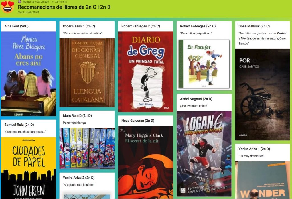 Demà, 23 d’abril, diada de Sant Jordi, serà un dia especial i diferent, perquè no podrem passejar per places i carrers ni mirar els llibres a les parades i llibreries. Això no treu que poguem commemorar la festa des de casa.Us fem una proposta per compartir els llibres que més us agraden: Ens podeu enviar un correu amb alguna foto de llibres a biblioteca@elpedro.cat i les publicarem a un mural que farem amb el programa padlet. Si voleu, també ens podeu enviar algun vídeo amb alguna lectura o explicació d’algun llibre.