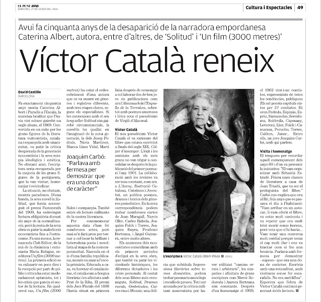 Víctor Català és una gran escriptora escalenca que va escriure, entre d’altres obres, SOLITUD i DRAMES RURALS. Avui es compleixen 50 anys de la seva mort i li volem retre homenatge.