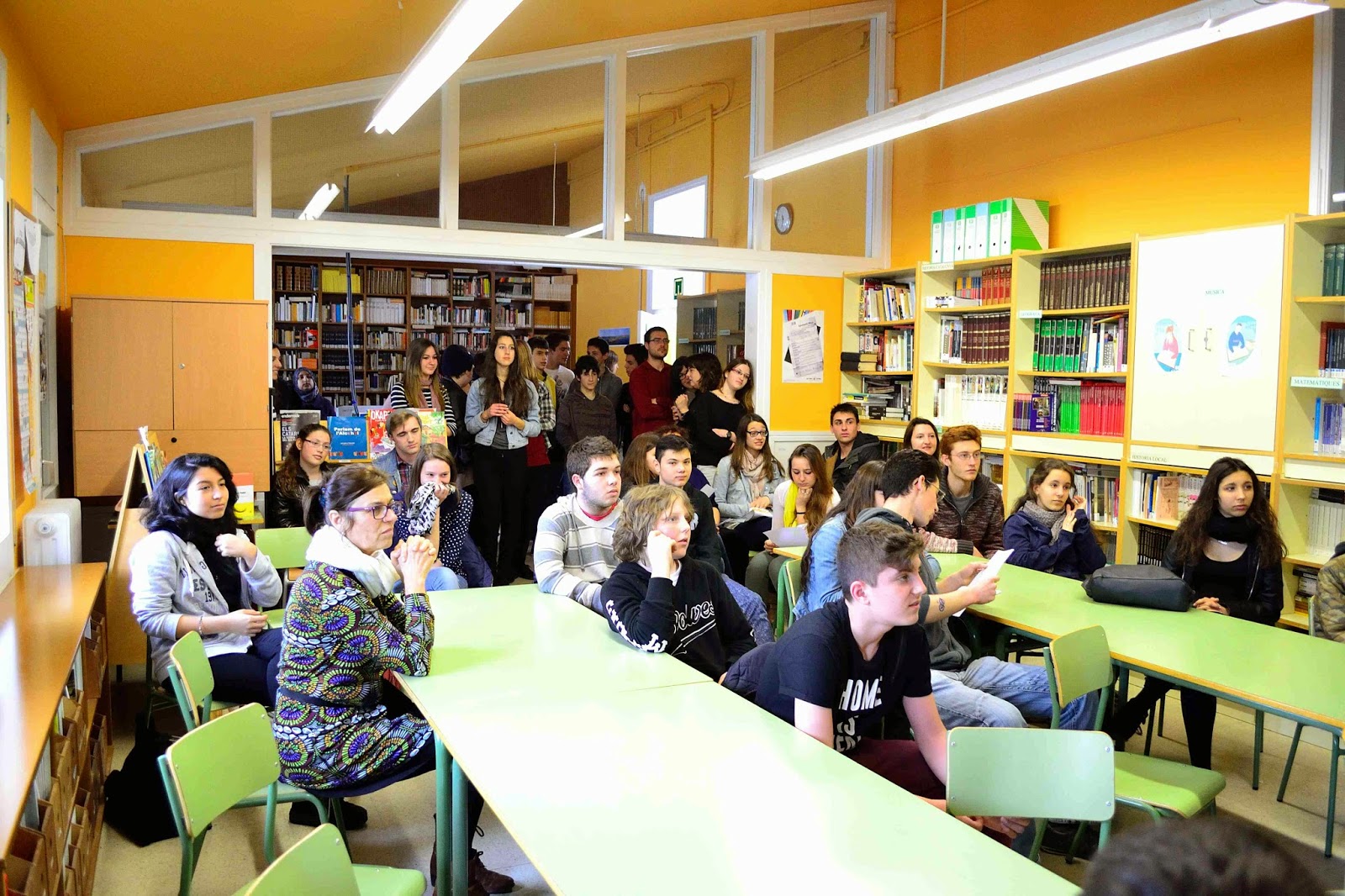 Amb la veu d’alumnes i professors del centre hem pogut escoltar el poema en català, castellà, francès, anglès, romanès, italià, alemany, grec modern, llatí i mandarí. [Extret de http://mardellibres.blogspot.com.es/2015/03/la-poesia-ens-uneix-lins-el-pedro-de.html]