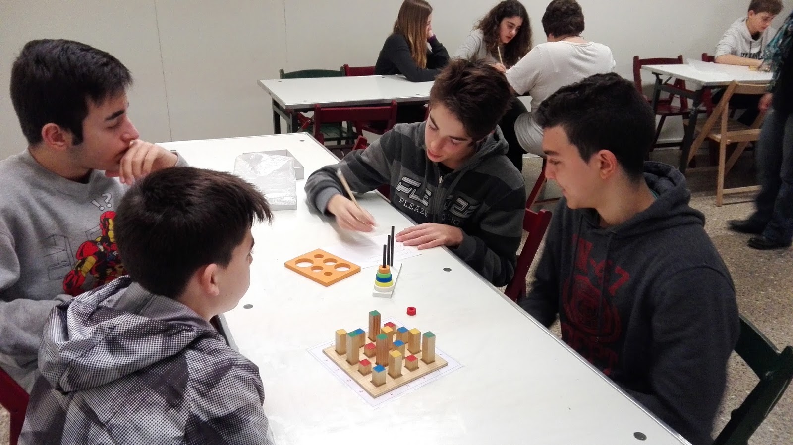 Els alumnes de 2n i 3r d’ESO poden experimentar, a través de la manipulació de materials lúdics, els elements matemàtics que ens envolten. Aquests experiments representen petits reptes o mostren aspectes poc habituals i sorprenents de la matemàtica i no requereixen coneixements específics.