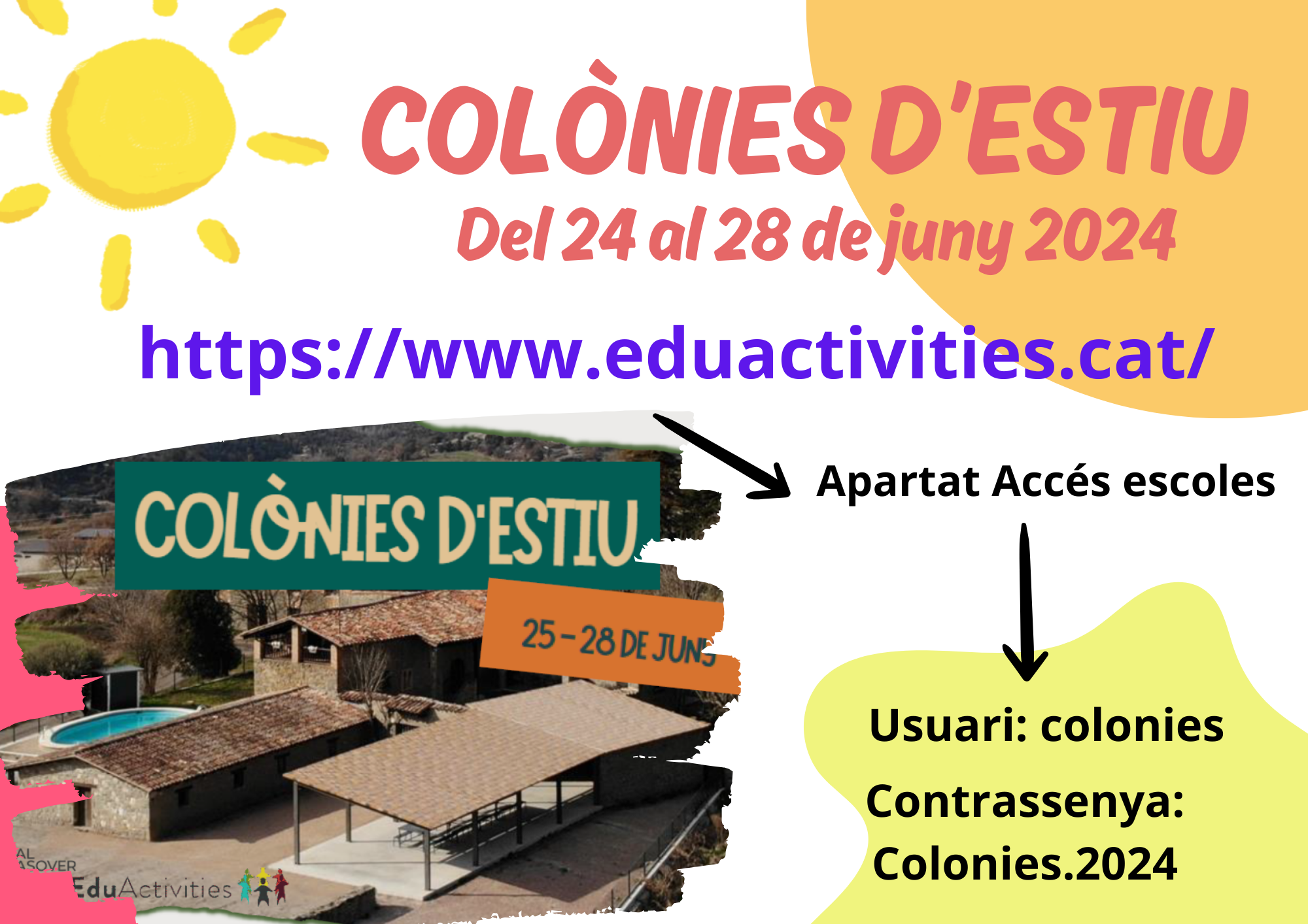 Aquest any, com a novetat, des de l’AFA proposem unes colònies d’estiu del 24 al 28 de juny gestionades pel nostre proveïdor extraescolars i menjador Eduactivities.