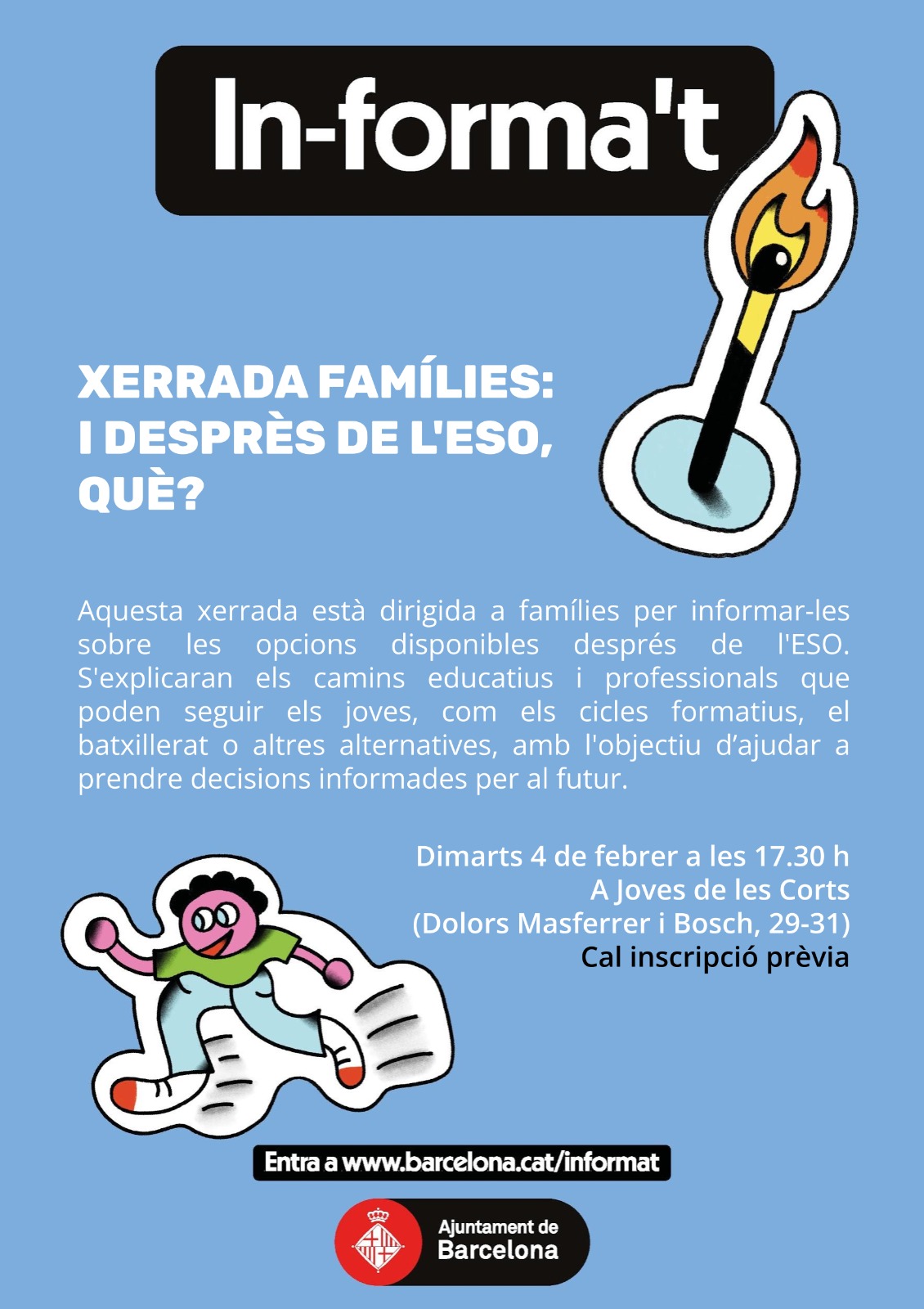Aviat haureu d’acompanyar als vostres fills i filles a escollir nous itineraris educatius: batxillerat, cicles formatius o altres alternatives.  Si aneu perduts o voleu aclarir dubtes no dubteu en assistir-hi.