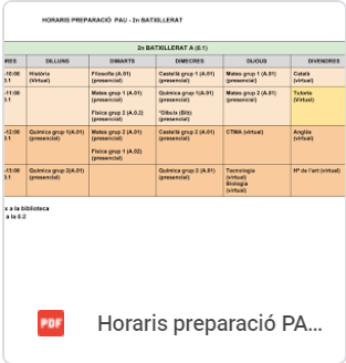Publicat 06/06/2020 a 313 &vegades; 328 en Horaris preparació PAU.